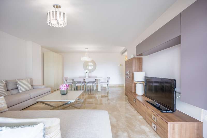 Located in La Paloma, Manilva, this impressive apartment offers an exclusive lifestyle on the Andalusian coast. With a contemporary design and a total of 171.2 m² built, the property stands out for its ability to combine comfort, luxury, and functionality. It features three bright bedrooms and three bathrooms, one of them en suite, ensuring space and comfort for the whole family. One of the main attractions of this apartment is its spacious private terrace of 27.75 m², offering partial sea views, ideal for enjoying outdoor meals or simply relaxing while contemplating the landscape. The property boasts a fully equipped kitchen accompanied by a laundry area, as well as a cozy and bright living room. From the various rooms of the house, you can enjoy views of the countryside, mountains, sea, or garden and pool. Comfort features include centralized air conditioning and underfloor heating throughout the home, managed by an advanced home automation system that ensures an optimal environment year-round. Located in a gated community that guarantees the safety and tranquility of its residents, the apartment offers access to a range of exceptional community facilities. These include an outdoor pool, an indoor pool, and a social lounge, as well as extensive green areas where you can walk and unwind. The access is optimal, being close to services, transport, and just a short walk from the beach, Sotogrande and La Duquesa ports, golf courses, and various leisure areas. Finally, the property is designed to meet the highest standards of safety and comfort. It includes a smoke detection system throughout the home and water leak detectors in wet areas such as the kitchen and bathrooms. Access is facilitated by an elevator, and the offer includes a parking space in the community garage; additionally, this home has another parking space available for purchase. This apartment in La Paloma is undoubtedly an ideal option for those seeking a luxurious and functional home in a picturesque and well-connected setting. Do not miss this opportunity and contact us.