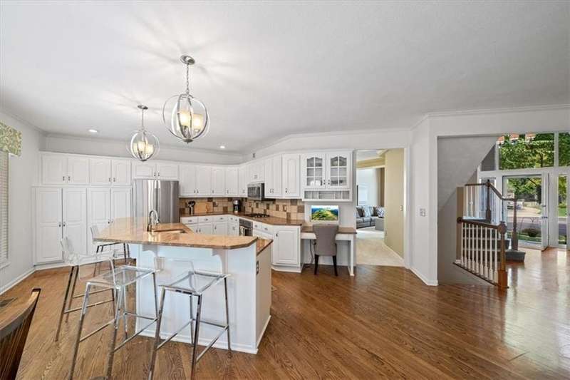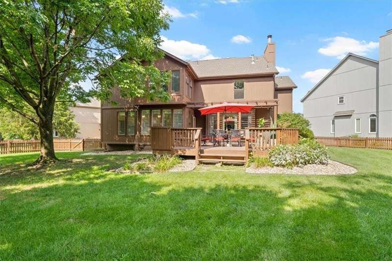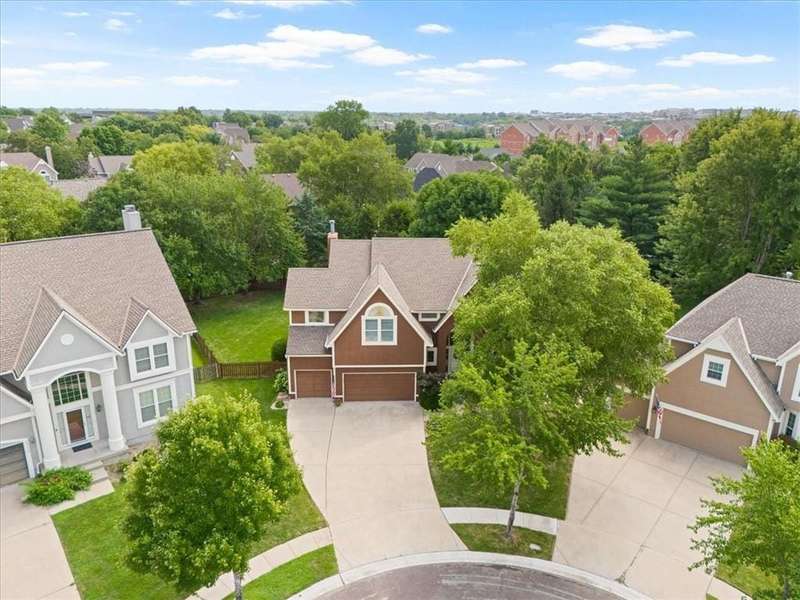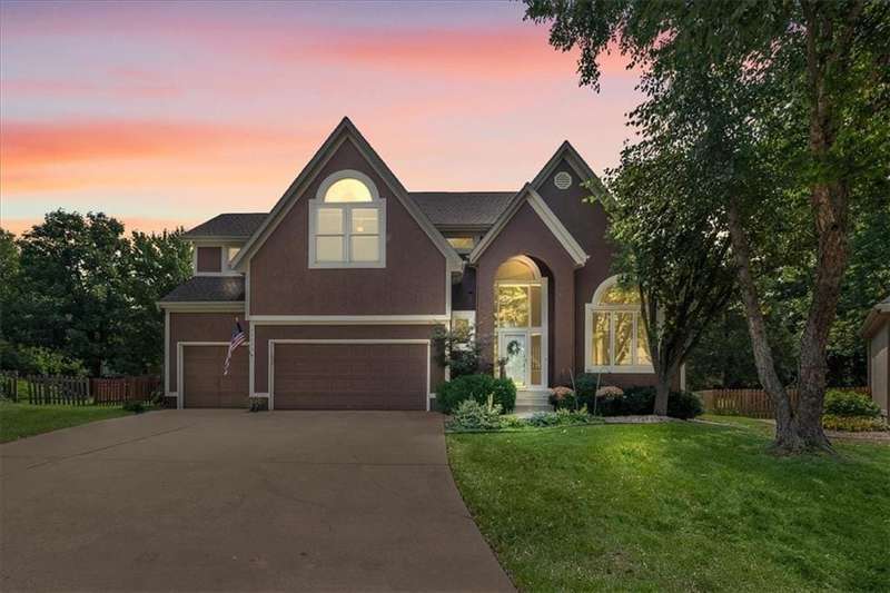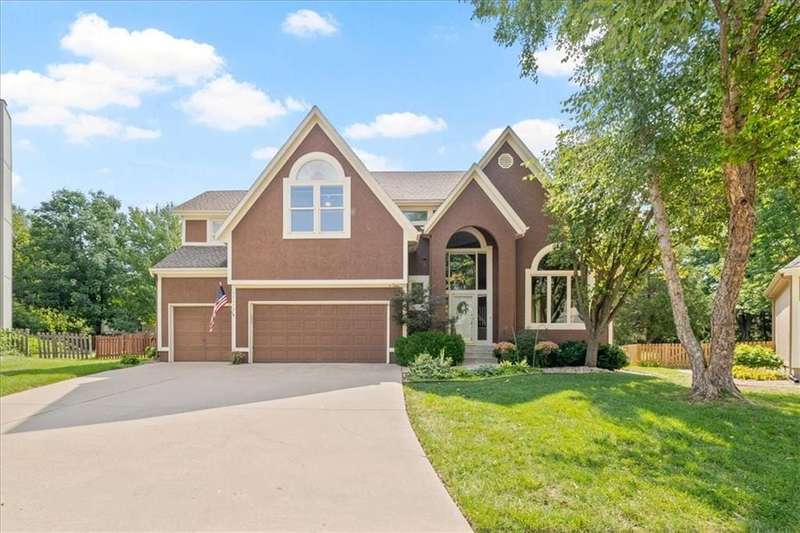 Tucked away on a quiet cul-de-sac in the sought-after Blue Valley School District, this home has it all! Enjoy a private, fully fenced backyard with mature trees, low-maintenance rock beds, and a Pergola covered back deckideal for relaxing or entertaining in every season.Step inside to a dramatic two-story foyer that welcomes you with warmth and elegance. The bright, open floor plan features a wall of windows that flood the living areas with natural light. The expansive kitchen boasts freshly painted, soft close cabinetry, and a massive island with ample seating. Beautiful family room with a cozy fireplace and custom built-insperfect for everyday living or hosting guests.The spacious primary suite with updated vanities and whirlpool tub provides a peaceful retreat. Second floor laundry is convenient to all the generously sized bedrooms. The freshly painted interior and new carpeting, add a fresh, modern touch throughout. The finished basement, complete with a second fireplace, offers additional space for recreation, work, or relaxation. A 3-car garage includes an electric vehicle charger, providing practical convenience. Located just minutes from top-rated schools, shopping, and dining!