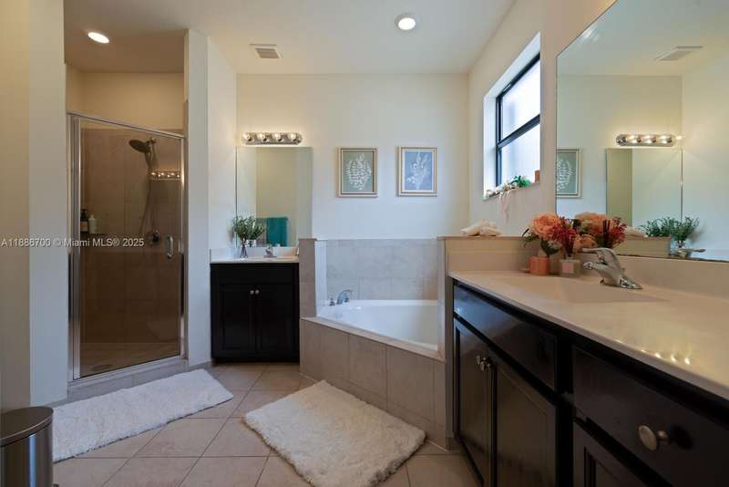Bright and Spacious 5 Bedroom Smart Home located in the Oasis. This home features an open kitchen into Family Room with a Large Formal Living/Dining Combination, Two Car Garage with a dedicated Driveway. All 5 Bedrooms are located on the Second Floor with laundry conveniently situated at the end of the hall with private door. Primary Bedroom is incredibly spacious with walk-in closets and en suite. The Primary Bath has a separate Shower/Tub Combo and Dual Sinks. Property has accordion shutters throughout.