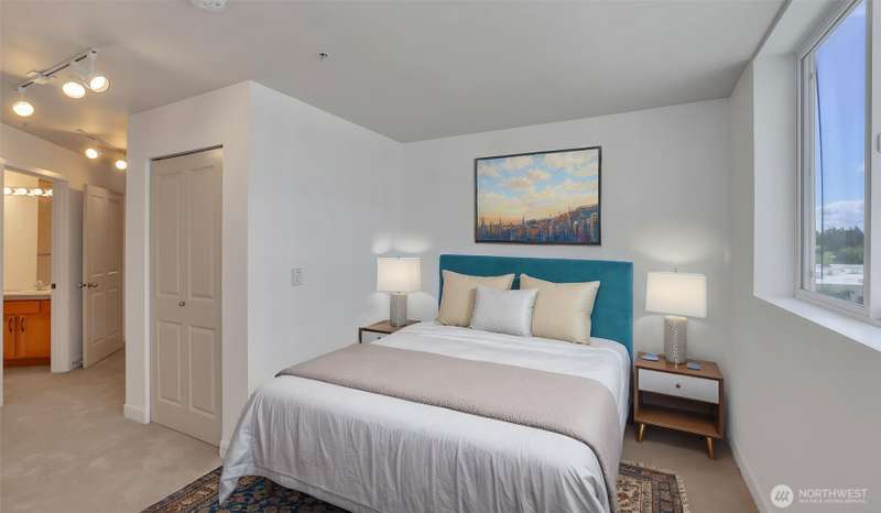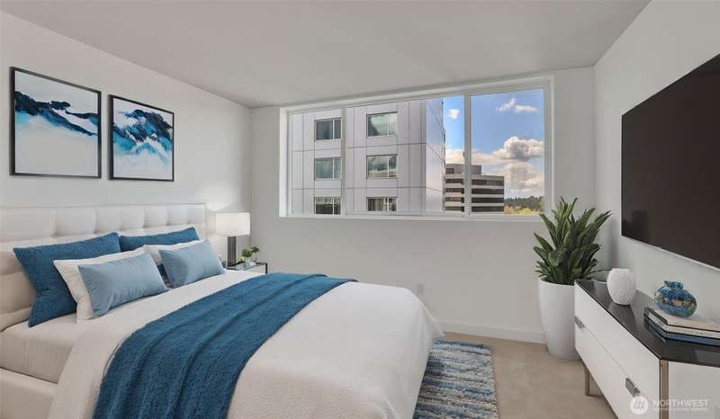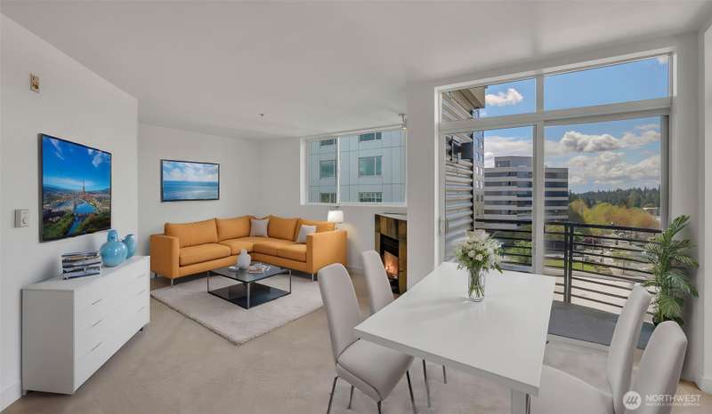 Experience urban luxury in this top-floor 2 bedroom + den penthouse condo in Downtown Bellevue. The primary suite features an ensuite bath and walk-in closet, while the spacious living is an open floorplan concept. Step onto the SW-facing balcony to enjoy stunning city views and abundant natural light. Brand new carpet and fresh interior paint! This home comes with two parking spots in secured garage, a storage unit, and no rental cap. Located just steps from top schools, coffee shops, dining, groceries, and premier shopping at Bellevue Square, The Bravern, and the Link Light Rail, it offers the best of convenience and sophistication. Well managed HOA and strong reserves.