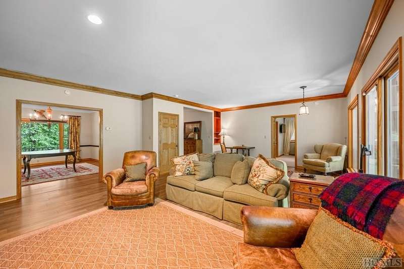 Discover the idyllic mountain charm of this four-bedroom, three-and-one-half-bathroom home situated on a beautiful estate setting of 2.43 acres in Sapphire Valley. Surrounded by lush forests on all sides, this property presents an ideal opportunity to get away and unwind with the serene soundtrack of nature playing in the background. You are greeted by a wide, covered front porch, perfect for relaxing in rocking chairs or a classic porch swing as you watch the world go by. On the main level, you will find the living room with new wood floors, kitchen, dining area, and laundry room with convenient access to the main living spaces. Located off the kitchen and living room, the covered back porch overlooks the garden, providing an excellent spot for family gatherings or entertaining. With the addition of a fireplace, the porch has become a cozy year-round retreat. Or, seek solace in the lovely gazebo nestled alongside the creek bordering the property and enjoy your evening beverage. Whether you have a large family or enjoy entertaining, you will appreciate room to spread out. The primary bedroom is conveniently located on the main level, and its ensuite bathroom offers double vanities and a large garden tub. Head upstairs, where the upper level features three additional bedrooms, allowing comfort and privacy for family or guests. Additional features include a generator and a workshop on the lower level. Membership in Sapphire Valley confers a number of wonderful amenities such as golf, three swimming pools, the fitness center, tennis courts, skiing, snow tubing, access to Fairfield Lake, and so much more! Whether you desire a full-time residence or a splendid summer sanctuary, this wonderful home has everything you need to find peace in the mountains.
