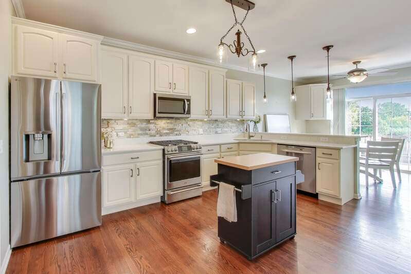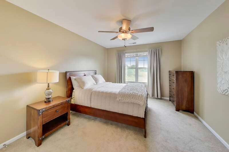 Welcome to Deer Park Estates. This beautifully maintained two-story townhome with a finished basement offers comfort and low-maintenance living. Tucked at the end of the row with no direct neighbors, this rare end-unit enjoys privacy along with serene views of the open space preserve and pond. The main floor features hardwood floors, a bright and inviting living space, and a convenient first-floor laundry. The updated kitchen flows easily for everyday living or entertaining, while the attached two-car garage adds practicality. Three generously sized bedrooms and two full baths, including a primary suite with large walk-in closet. The finished lower level extends your living options with a dedicated room that works perfectly as a home office, guest room, or additional bedroom, complete with its own full bathroom. With 3 bedrooms and flexible living spaces, this home is ideal for buyers looking to downsize while staying in the area they love, or for those who want more space without the full responsibilities of a single-family home. Just one block to shopping and groceries, and only minutes from the expressway.