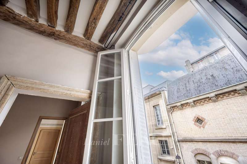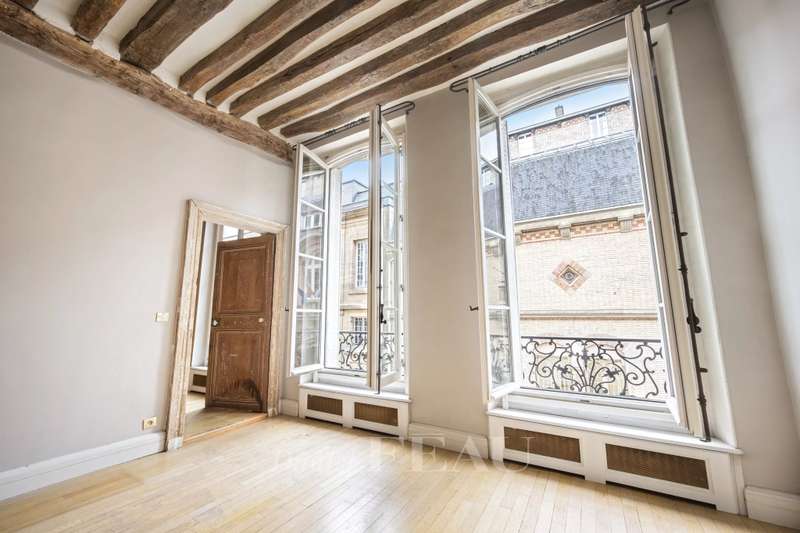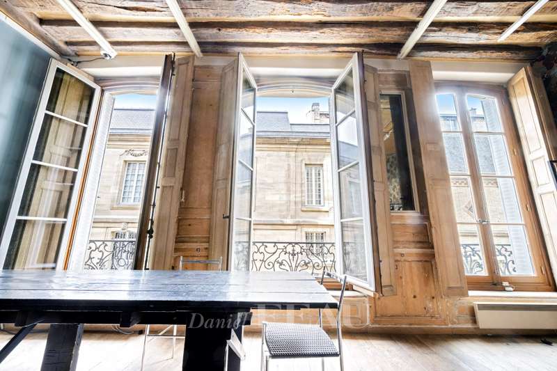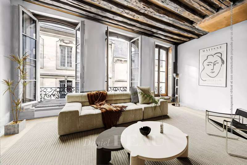 Between Place des Vosges and the Picasso Museum, a classic apartment with very spacious rooms. Located on the first floor of a beautiful freestone building with an elevator, it faces the Carnavalet Museum. This 125m² apartment requires some updating. Sunny and quiet. A cellar is included.