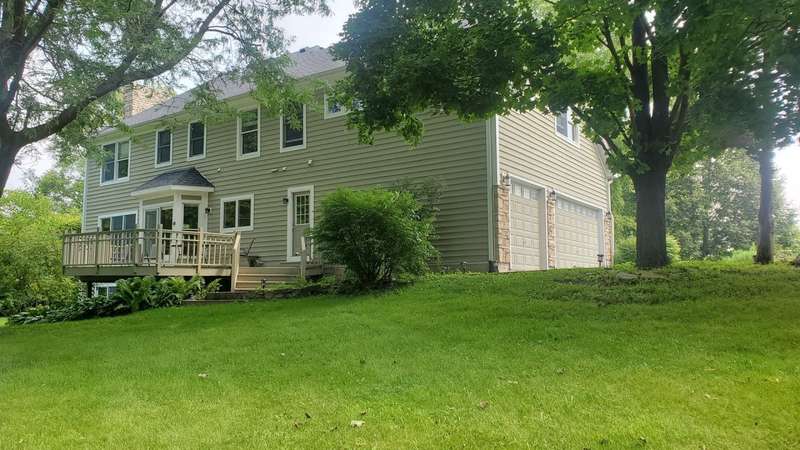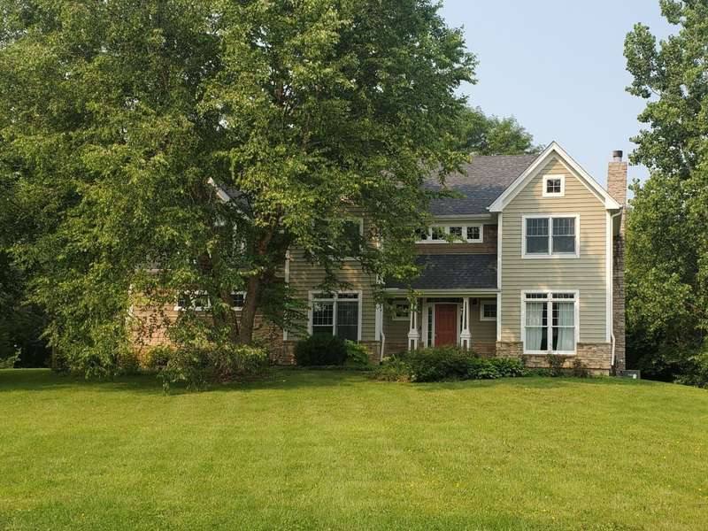 This 2.75-acre wooded property offers ultimate seclusion and tranquility, enhanced by mature fruit trees and a dedicated chicken hutch, inviting a harmonious connection with nature. The heart of the home is the expansive kitchen, complete with a large island, stainless steel appliances, abundant cabinetry, and a walk-in pantry, all framed by stunning wilderness views. Relax by the stone fireplace in the welcoming family room. The primary suite boasts an oversized ensuite with a jetted tub, plus an attached flexible space ideal for a nursery, office, or dressing room. Three additional bedrooms on the upper level feature newer carpet and share a spacious hall bath with a double vanity, alongside a convenient second-floor laundry room. Practical amenities include a large mudroom with a dog shower and a spacious deck, perfect for enjoying the outdoors. The finished basement, while needing new carpet, provides exciting potential for further customization. Located in an exceptional area with top-rated schools and proximity to everything the Fox River Valley has to offer, this property presents an extraordinary chance to create your perfect escape.