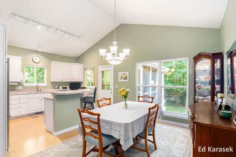 Discover 6127 Kings Way in The Ravines, an Arnold Palmer Signature Golf Community, on a private, wooded 1.3-acre lot. This inviting home offers a main-floor primary suite with dual sinks & dual closets, a bright living room with soaring ceilings, hardwood floors, and a cozy gas fireplace, plus an office and laundry for easy single-level living. Enjoy a chef's kitchen with Bosch appliances, ample dining space, and a screened porch and deck for relaxation or entertainment. Hobbies are a breeze with a heated workshop and a dedicated craft room, and the lower-level bedroom is perfect for workouts or guests. Outdoor enthusiasts will love the garden and potting shed. The Ravines features a pool and optional golf membership. You're just minutes from top-rated schools, Saugatuck, Grand Rapids, beaches, wineries, and more. Don't miss the chance to join this wonderful, welcoming neighborhood schedule your tour today!