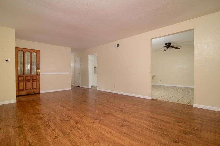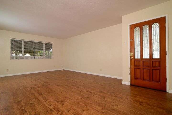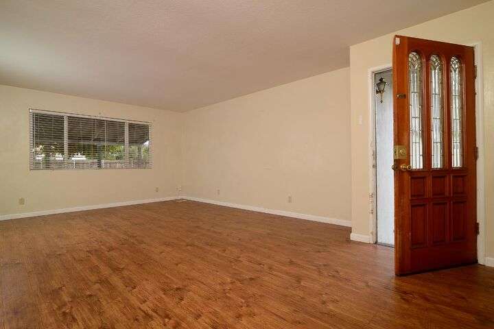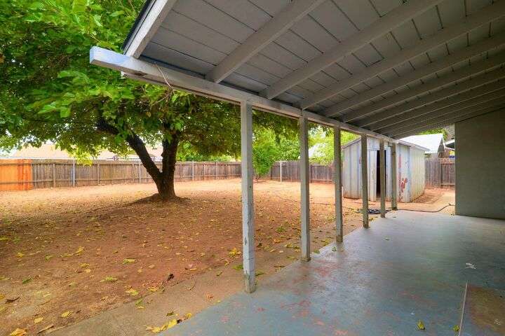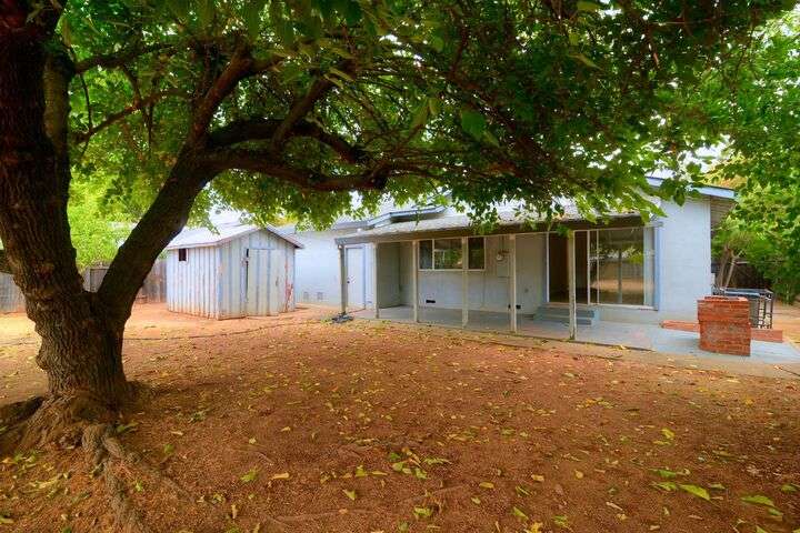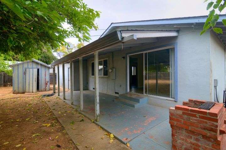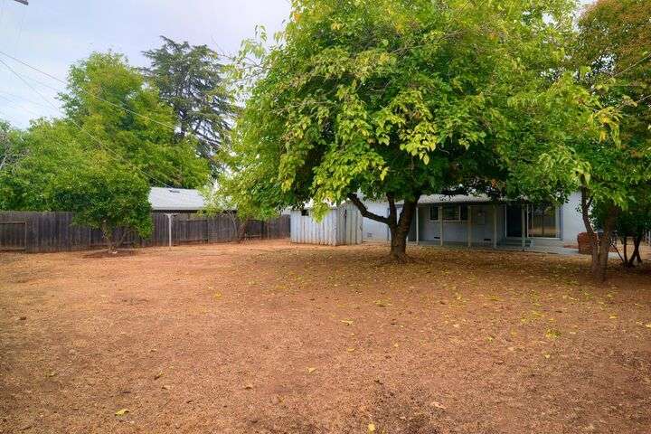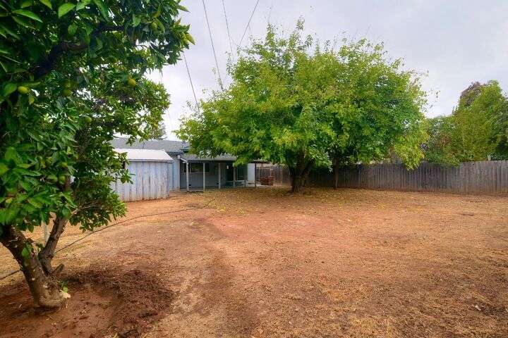 Opportunity knocks! Bring your paint brush and build equity. This 3 bedroom, 2 full bath home sits on a pretty .20 acre lot with fruit trees and a lovely shade tree. Plenty of room to build an ADU or create a vegetable garden. Primary Suite. Spacious kitchen with tile floors. Newer roof and gutters. Newer water heater. Central heat and air. Laminate flooring. Detached shed provides extra storage. Two car garage with laundry and additional storage.