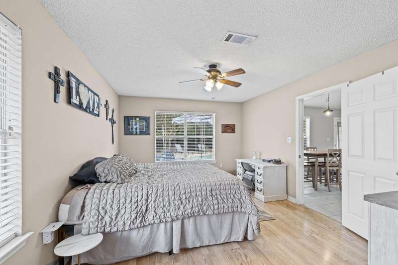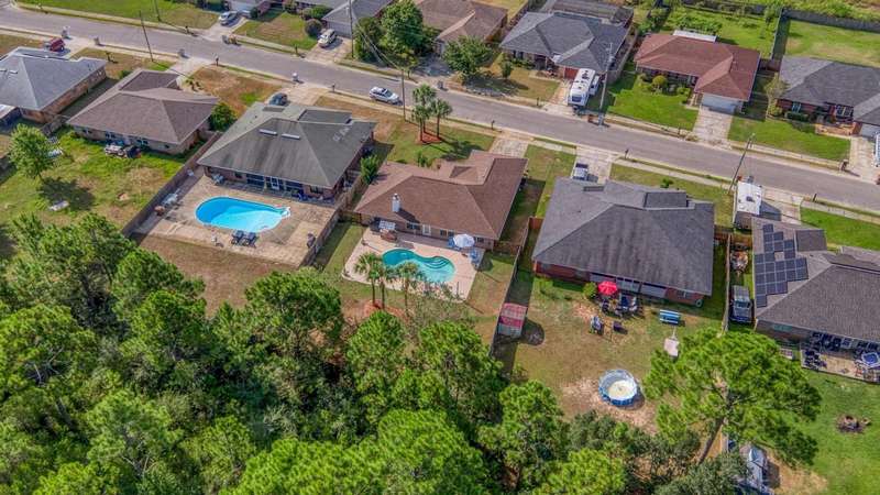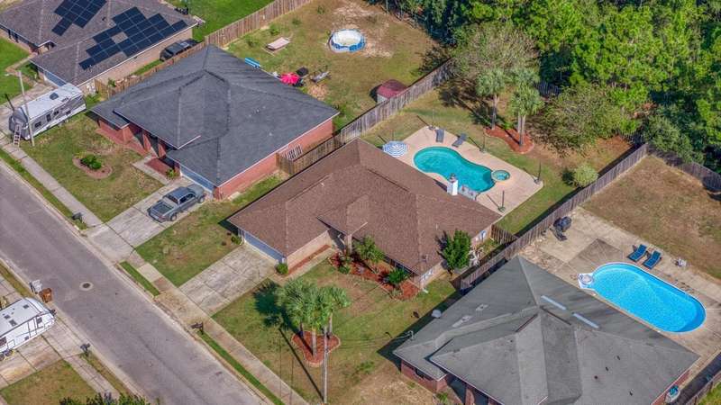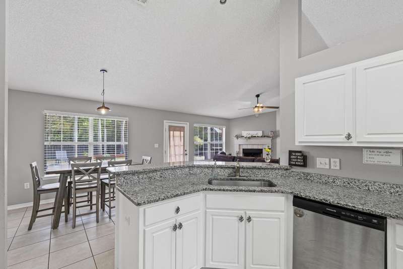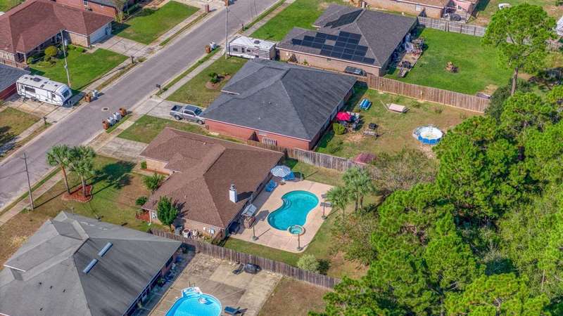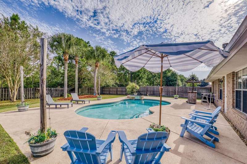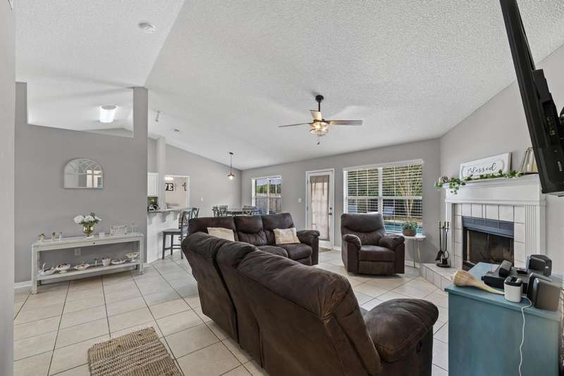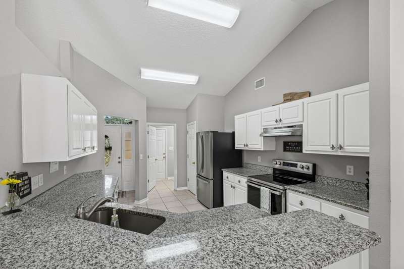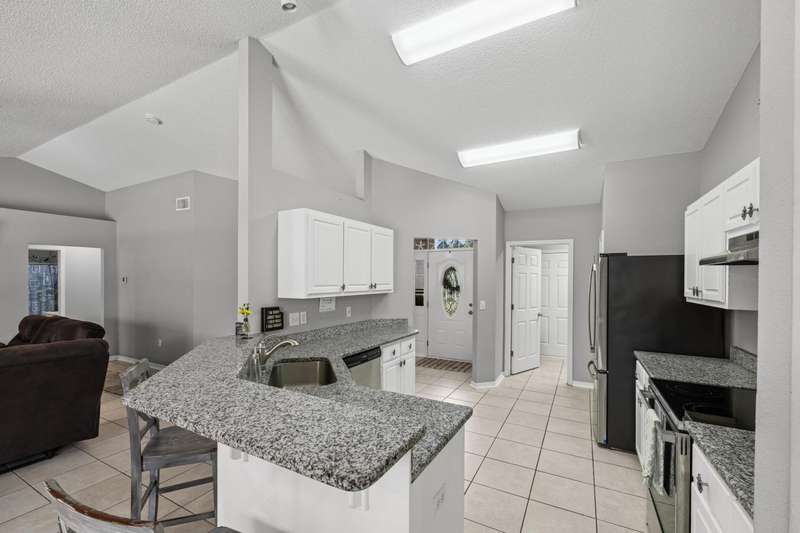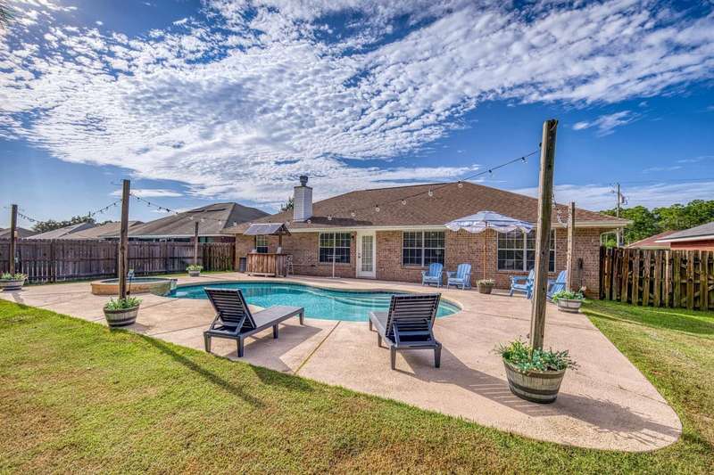Welcome to this beautifully maintained 4-bedroom, 2-bathroom home offering 1,783 square feet of living space on a generous .29-acre lot. Designed for both comfort and entertainment, this home combines modern finishes with the ultimate outdoor retreat. Inside, the open floor plan features a bright living room with a back door that flow seamlessly into the backyard. The kitchen is thoughtfully designed with granite countertops, stainless steel appliances, a breakfast bar, and a sunny eat-in dining area, making it the heart of the home. The primary suite offers a relaxing getaway with an ensuite bathroom that includes a walk-in shower, soaking tub, and double-sink vanity. Three additional bedrooms provide plenty of space for family, guests, or a home office. Step outside and discover your ow Enjoy endless summer days in the gunite saltwater pool surrounded by tropical palm trees, lush green lawn, and plenty of patio space for outdoor dining and lounging. The privacy-fenced yard creates a serene atmosphere, while the large lot provides ample room for pets, gardening, or backyard games. A yard building offers additional storage for pool equipment, tools, or hobbies, keeping everything neat and organized. Whether you're hosting barbecues, relaxing under the palms, or cooling off in the pool, this outdoor space was made for year-round enjoyment For peace of mind, major updates include a new roof and HVAC system in 2019. This move-in ready Florida pool home has it allmodern upgrades, versatile living space, and a resort-style backyard. Don't miss your chance to call this property home!