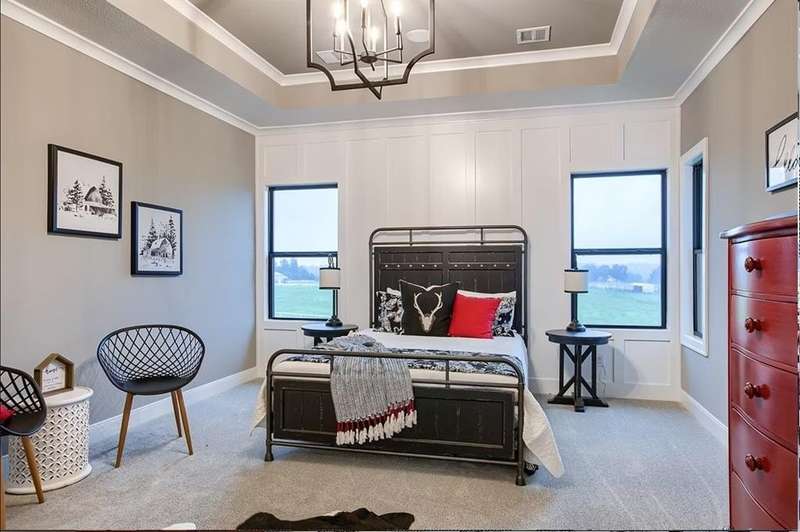 The Bella Plan by Gabriel Homes sits on lot 60 in Southern Meadows and features a fantastic size yard and peaceful views. Welcome to this spacious 5-bedroom home thoughtfully designed for comfort and functionality. A rare feature of this plan is having both a main-level office and a private bedroom—perfect for guests or in-laws. Step inside to a bright and versatile study, ideal for a home office or quiet retreat. The open-concept layout connects the large kitchen to the great room, creating a seamless space for everyday living and entertaining. The chef’s kitchen includes a generous island, abundant cabinetry, and a walk-in pantry that buyers love. The great room impresses with floor-to-ceiling windows, a beautiful fireplace, and custom built-ins. Upstairs, you’ll find four spacious bedrooms and a conveniently located laundry room. With its thoughtful layout and stylish finishes, this home blends space, function, and modern design. Home is currently framed with an estimated completion of Summer 2026.