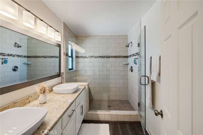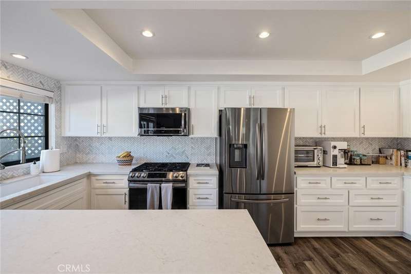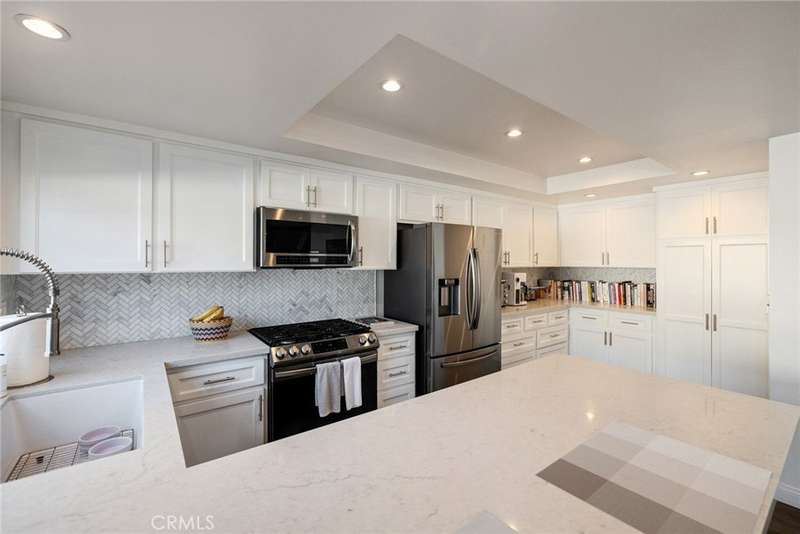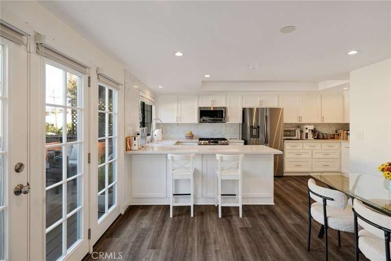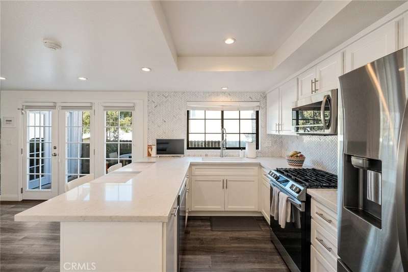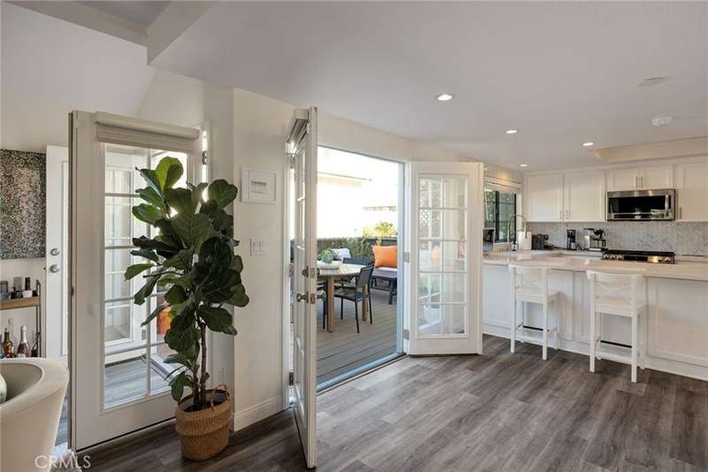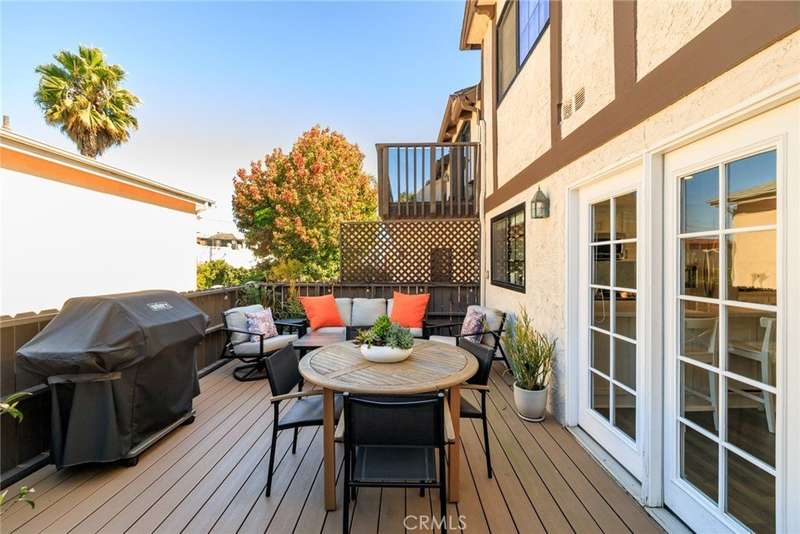 FULLY FURNISHED home for sale! Welcome to this bright and airy 3 bedroom/3 bathroom home that boasts 1900 square feet of comfortable living space, is West of PCH & a very short walk to the beach, pier, strand, restaurants, shopping, nightlife and comes fully furnished! What a package!! Just pack your bags and move right in! The main floor features a large and gorgeous fully remodeled kitchen, with quartz countertops, quartz sink and Samsung appliances. Loaded with tons of cupboard space and a pantry. The super cozy living room comes equipped with a corner fireplace and beautiful waterproof oak-style flooring and comfortably sized powder room. Upstairs you will find 2 bedrooms, each with their own en-suite bathrooms and vaulted ceilings. The primary bedroom has a walkout balcony and dual sinks in the bathroom. On the lowest level you will find an additional large bedroom which could also be used as a home office, home gym or a play room for children! The home has direct garage access as well!