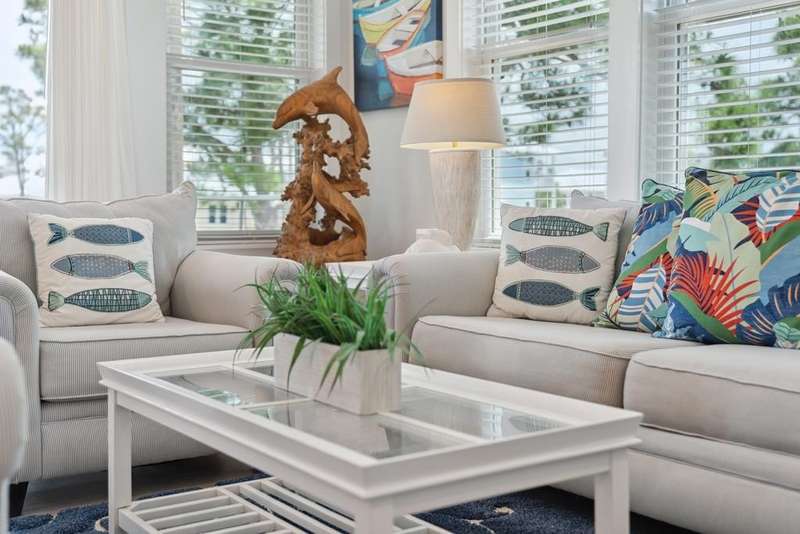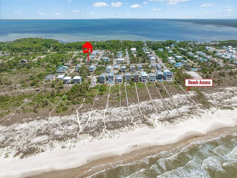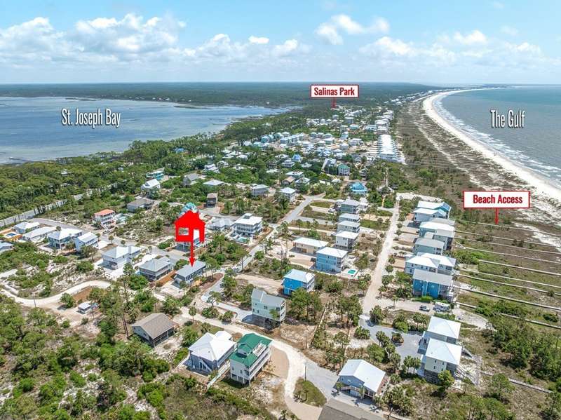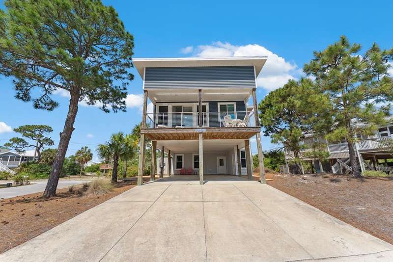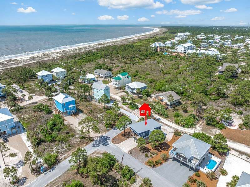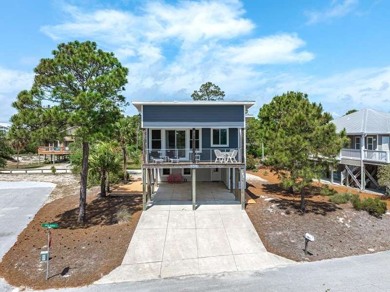 Welcome to the Little Blue Caper, a chic second tier to the beach home in excellent condition which was built with efficiency and comfort in mind. If you're seeking a turnkey beach home in a peaceful and convenient location at an affordable price point, look no further. Located in the Surfside Estates neighborhood on the low density south Cape, this 2016-built home is in like-new condition as an owner-occupied and extremely well-maintained residence with 3 bedrooms, 2.5 bathrooms, and just over 1,300 sq ft of well-appointed living space. Situated on a corner lot that is only 2 parcels behind beachfront, you can enjoy the Gulf breezes and peek-a-boo water views with a short walk to the deeded beach access on Pebble Beach Avenue. Don't forget about the south Cape amenities right around the corner, including the bike path, nearby bay access, nature trails and pickleball courts at Salinas Park, and the local favorite Scallop Republic beer, wine and music bar. The Little Blue Caper would make for a great primary residence, second home, or income-producing rental property, call today to schedule a showing.