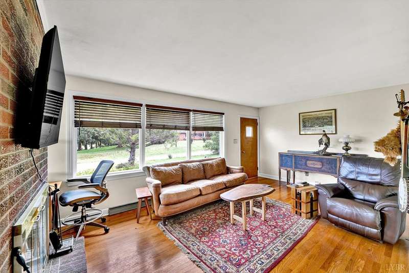 Charming brick ranch boasting a roomy backyard, carport, patio, full fireplace, woodstove, deck, and a full home generator. Full basement (waterproofed by Seal-Tite 2025), updated Granite countertops in Kitchen, and hardwood flooring throughout. Picturesque location - only steps away from the Bedford Country Club, and one left turn out of the driveway takes you on a scenic drive up to Peaks of Otter. Situated between Bedford and the Blue Ridge Parkway, enjoy the perks of lower county taxes yet just a stroll away from town amenities, golf, pool, tennis. Just a few short minutes from Claytor Nature Center, a 490-acre nature preserve with trails and river access. Internet provided by Shentel, home is connected to Bedford Regional Water Supply.