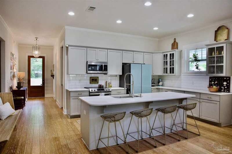 BACK ON THE MARK AT NO FAULT TO SELLER. MAKE AN OFFER. Have previous buyers appraisal in hand. ALMOST a half acre in East Hill. This kind of property is difficult to come by. Large private back yard that backs up to Million dollar homes on the locally famous 12th Ave tunnel of trees. It is an oasis in an extremely convenient part of town, within a couple of miles to Target, multiple dining locations, hospitals, Mall, and 15 minutes to the beach. Highlights of the home...First, behind the walls...This custom built home was built using 2x6's NOT 2x4's which besides the obvious strength qualities; it also provides better efficiency due to the thickness of insulation. The backyard is a paradise with a large green space and a parking pad for trailers, boats, or RV's. And of course the beautiful pool off the back covered porch invites everyone to go for a swim. A few more qualities of the home are... Outdoor hot/cold shower gas hookup for grill outdoor shed INSIDE THE HOME... 10' Ceilings throughout entire home 8' custom solid core Doors Custom Walnut floating desk with waterfall edge in Office Custom Pantry Cabinets in Laundry Custom Cafe shutters in Living area Unique solid bamboo floors that are extremely durable Wood burning fireplace Tankless Gas water heater Large Master shower with 2 Shower heads and custom double vanity Bespoke refrigerator with either teal or white interchangeable panels