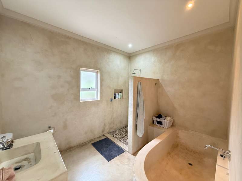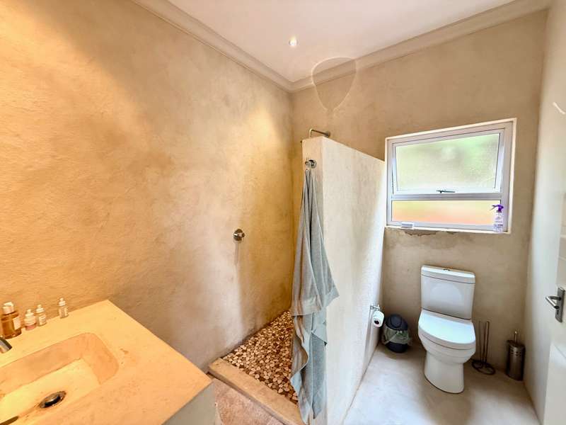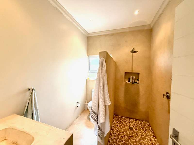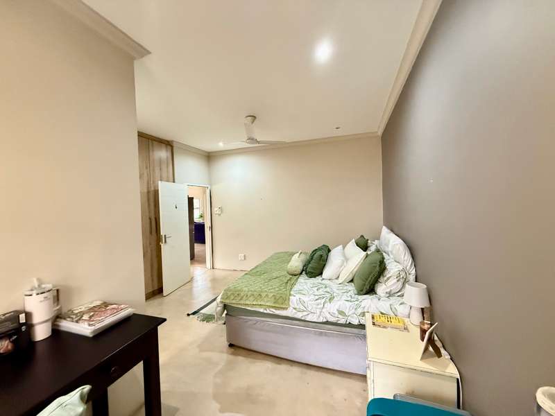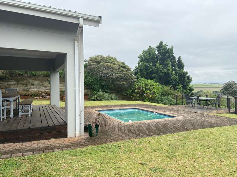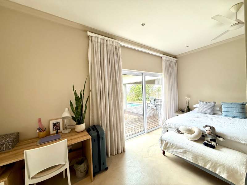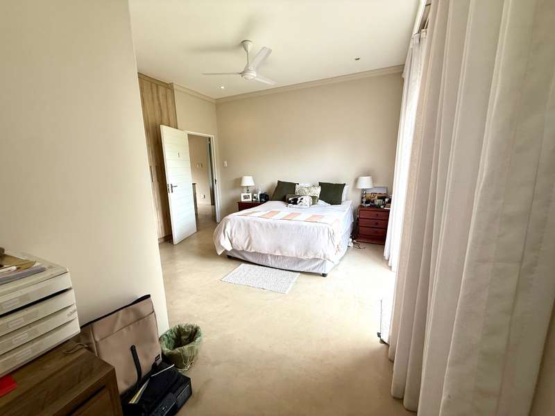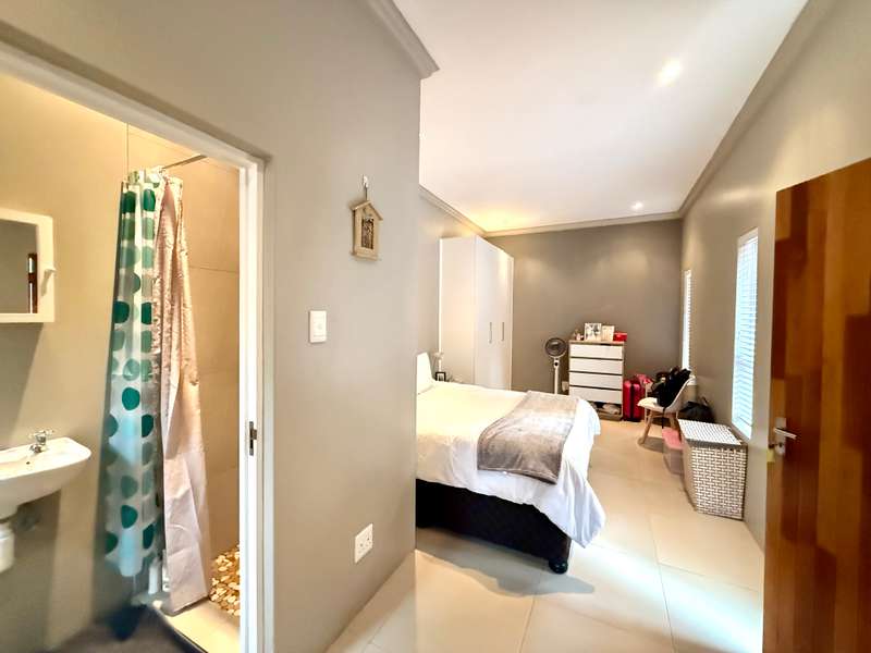 Enjoy beautiful views from this practical four-bedroom home, complete with a fully self-contained bachelor flat. The open-plan kitchen flows seamlessly into the welcoming lounge and TV room, leading out to a covered patio with uninterrupted views of sugar cane fields and the estate’s countryside. Each bedroom features its own en-suite bathroom, along with a dedicated study area and air-conditioning, making this an ideal family residence or an excellent investment property with student accommodation potential. The extended double garage includes a laundry section and a generous work or storage area, with secure parking in front of the garage for up to five additional vehicles. Added extras include a 5,000-litre water tank and a gas geyser. Set within a secure eco-estate, this property combines natural beauty with peace of mind.