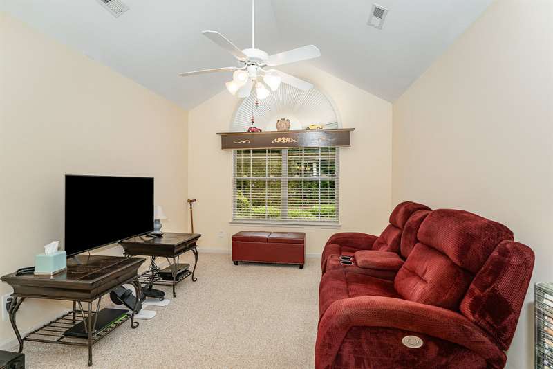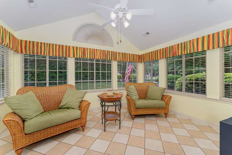 MOTIVATED SELLERS! ONE level living at it's finest! Enjoy maintenance free living in this well maintained 2 bedroom home complete with vaulted ceilings and an open floor plan! You will certainly appreciate the charming sunroom with tons of natural light and a private patio perfect for entertaining or enjoying your morning coffee. Space currently being used as a sitting room can easily be converted into a 3rd bedroom. The roof was replaced in 2019 & new HVAC installed in 2024! The quiet neighborhood setting features lush landscaping throughout, a community clubhouse with access to the pool and a fitness room. This home is conveniently located in close proximity to shopping, restaurants and highways. A must see...schedule your showing today!