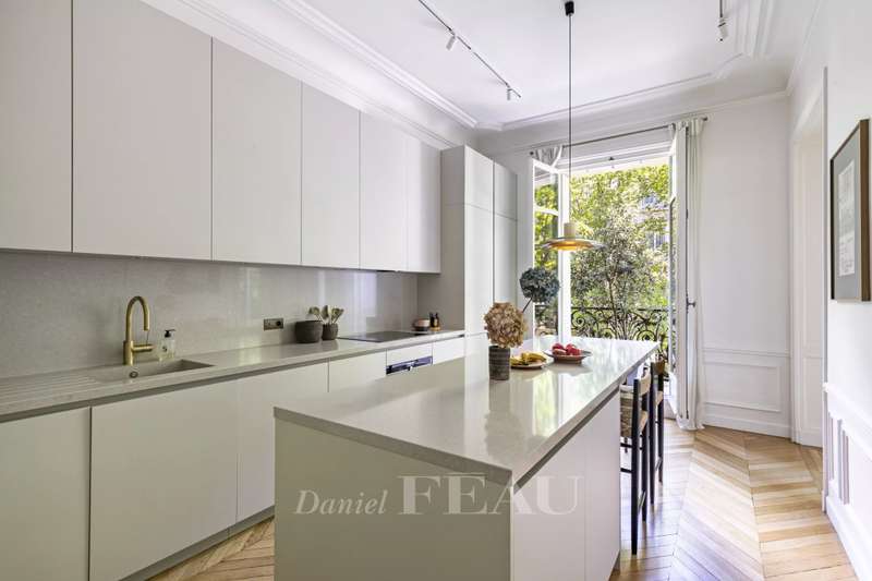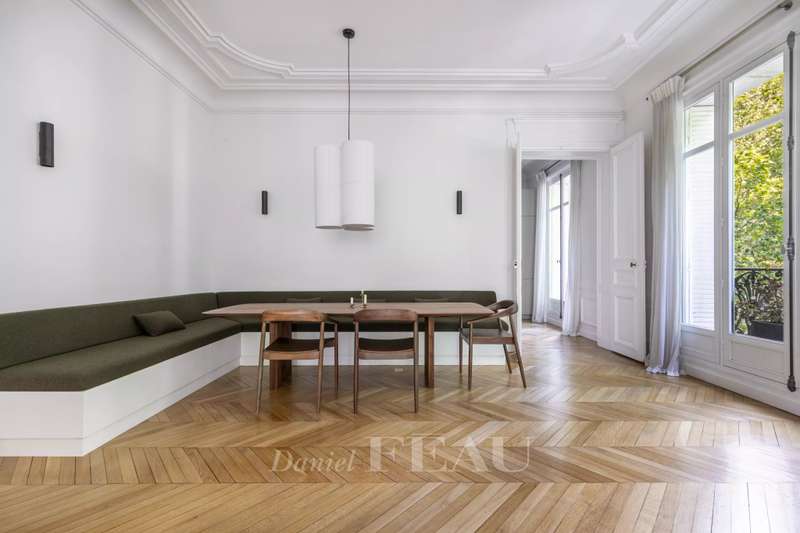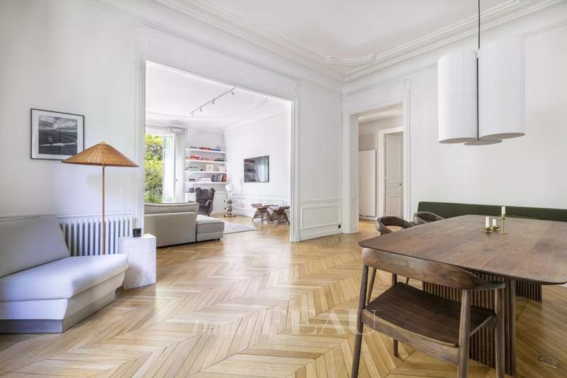 This exceptional near 195 sqm apartment is on the 2nd floor of a sumptuous late 19th century building with a lift located a stone’s throw from the Eiffel Tower and the Champ-de-Mars. Bathed in sunshine and benefiting from a near 20 sqm continuous balcony, it includes a south-facing corner living/reception room featuring 3.40 metre high ceilings, a dining room, an equipped kitchen with dining facilities, an air-conditioned master suite with a shower room and dressing room, two suites each with a bath or shower room and wc, a study, a utility room and a guest wc. The study could create a 4th bedroom if required. With a 9 sqm maid’s bedroom and a cellar.