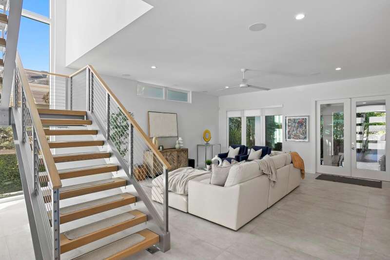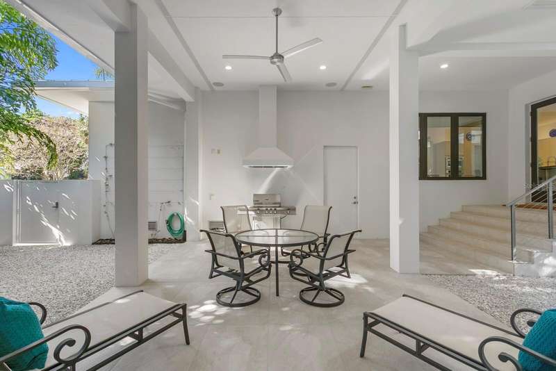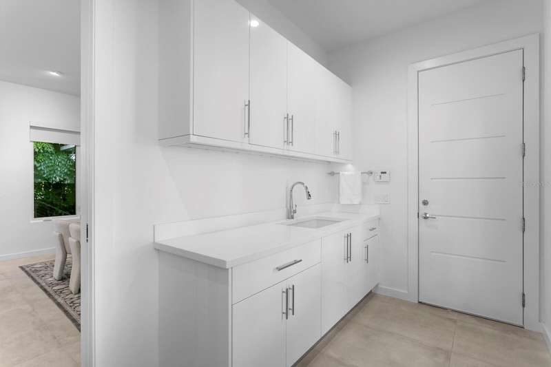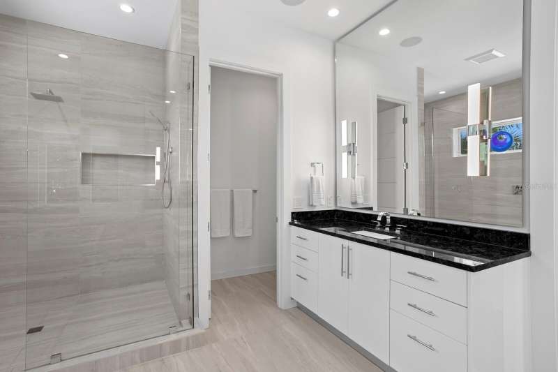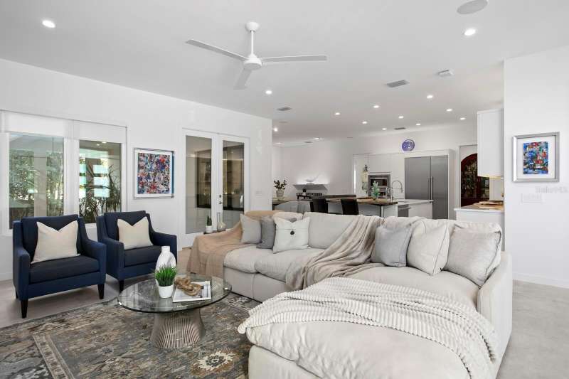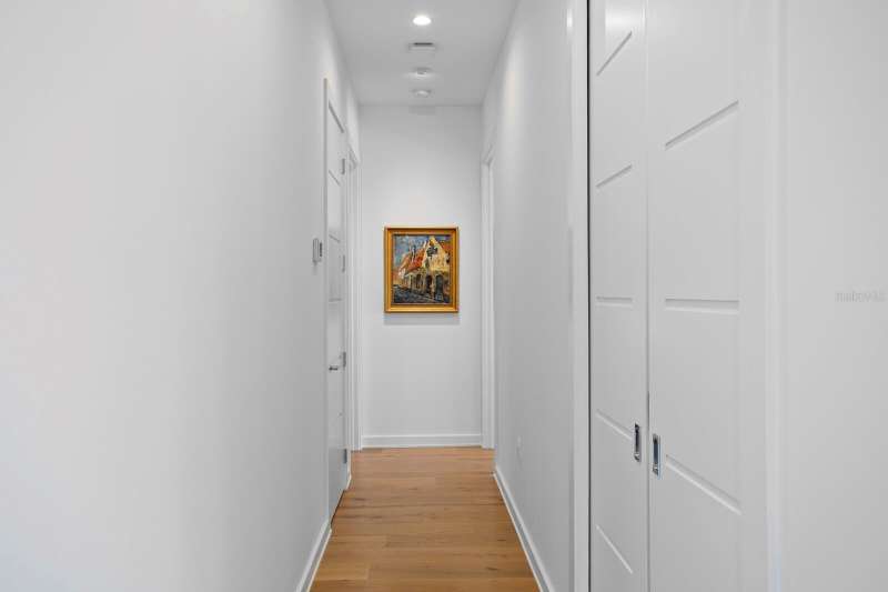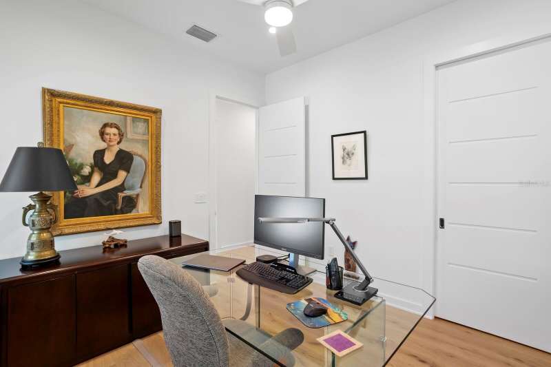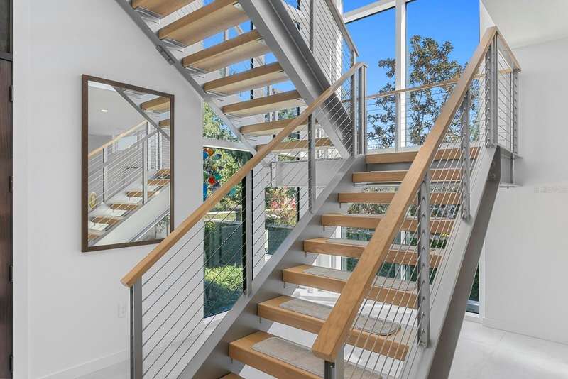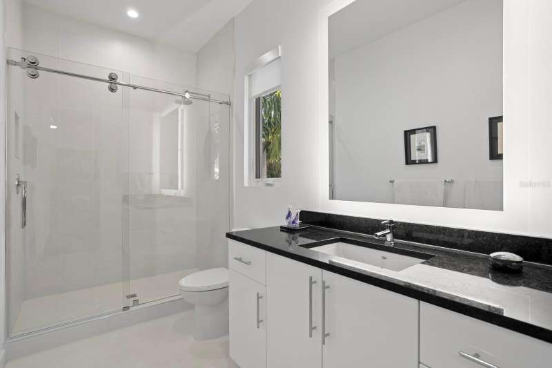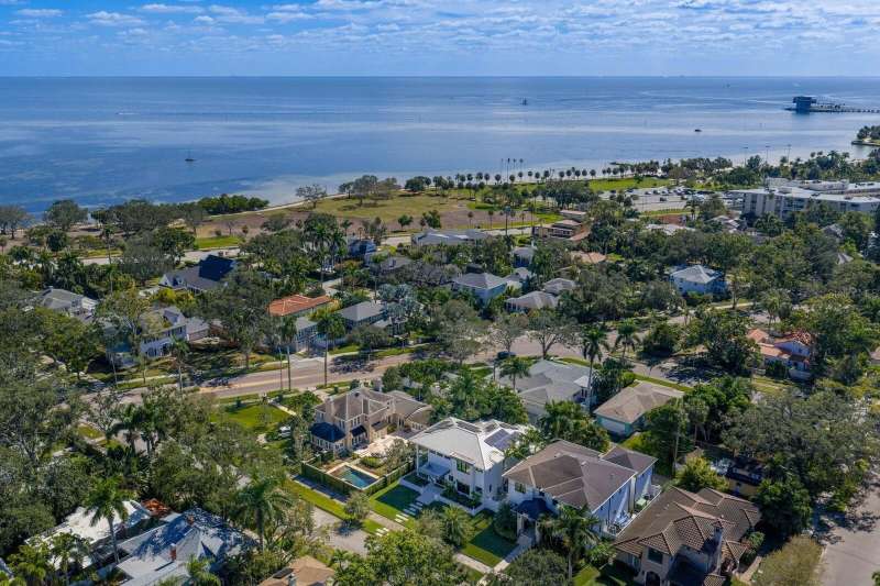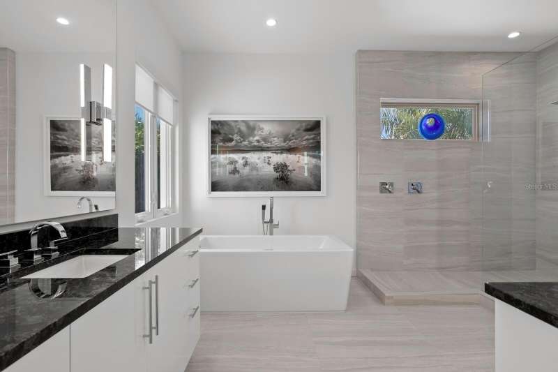 What if you could have modern construction in the hottest historic neighborhood in town? Tree canopies and hex block sidewalks, and holiday spirit beyond imagination? Blocks from the 3rd longest waterfront park system in North America, minutes from vibrant downtown, this “front porch neighborhood” is one of St. Petersburg’s most popular. Step into refined elegance in this custom-built Devonshire home, blending contemporary sophistication with cutting-edge efficiency. Soaring 10-foot ceilings, vast windows, and a striking floating staircase set the tone for the home’s upscale ambiance. The open-concept great room with porcelain tile flooring connects living, dining, and a sleek kitchen that features Thermador appliances, a natural gas cooktop, quartz countertops, a beverage refrigerator, and reverse osmosis water filtration, in addition to a large walk-in pantry. A dramatic live-edge wood dining counter adds warmth and character to the central island. There are four en suite bedrooms, including one on the main level (currently used as an office) that would be ideal for a guest suite. The upstairs primary suite features a luxurious bath with dual vanities, a soaking tub and separate large dual-head shower. There are two large walk-in closets and a Juliet balcony. Two additional bedroom suites are located on this upper level, along with a very functional laundry room. Engineered hardwood flooring on the upper level lends charm to the minimalist style. Step outside to a large covered lanai with a tranquil water fountain, wired and plumbed for an outdoor kitchen. Florida-friendly landscaping and privacy-enhancing masonry walls and vinyl fencing make this a wonderful space in which to relax. Plans for a pool are available, and the oversized 600 sq ft alley-access garage provides ample storage. A spacious mudroom offers even more storage and convenience. Built to current hurricane standards, this home features filled-block construction, Icynene spray foam insulation, a standing seam metal roof, and hurricane-rated windows and doors. Smart home systems include Sonos speakers (indoor and lanai), smart thermostats, Cat-6 wiring, LED lighting, and a dedicated technology closet. A Generac whole-home generator, owned solar panels, and two tankless natural gas water heaters ensure energy efficiency and peace of mind. Located in a neighborhood known for its charm and community spirit—with a voluntary HOA – this is more than a place to live; it’s a place to thrive. Come experience why St. Petersburg makes international headlines as a destination for arts, culture, dining, outdoor recreation and much more.