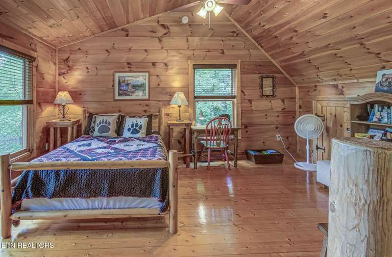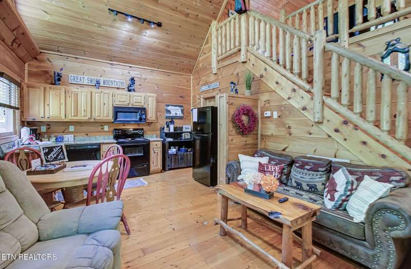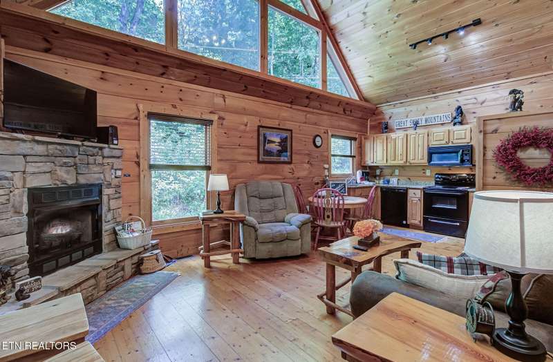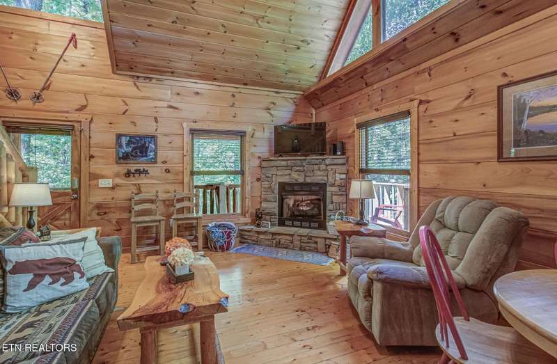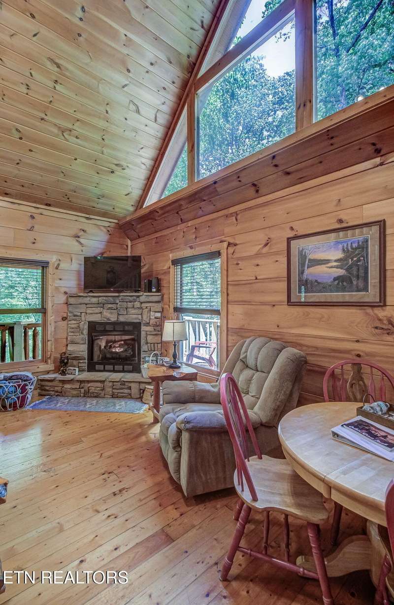 This charming cabin, nestled between Gatlinburg and Pigeon Forge, offers the best of both worlds-easy access to Dollywood, the Great Smoky Mountains National Park, and numerous area attractions, all in a peaceful, private setting. With over 107 reviews on Airbnb, a stellar 4.8-star rating, and over $45,000 in gross revenue for 2024, this property has already proven to be a guest favorite and a successful income generator. Perfect for a honeymoon or a small family, the cabin features a cozy one-bedroom layout with a spacious loft. The new back deck and private hot tub offer a serene space to unwind, while the backyard firepit is perfect for evenings under the stars. Inside, large A-frame windows flood the space with natural light, and the fully stocked kitchen with granite countertops makes meal prep a breeze.