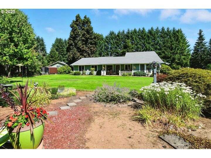 This beautifully maintained 4-bedroom, 2-bathroom home offers the perfect blend of comfort and function on a peaceful 2.5-acre setting. Step inside from the covered front porch to a welcoming entry and bright, open living and dining areas. The immaculate interior features LVP Flooring throughout the home (minus the master), built-ins, casual dining area, a convenient office space and laundry room. The kitchen shines with custom hickory cabinetry, stainless steel appliances, and a spacious pantry—ideal for those who love to cook and gather. The home includes three comfortable bedrooms plus a generous primary suite with an ensuite bath and walk-in closet. Enjoy year-round comfort with a heat pump and A/C. Outside, you’ll find an oversized 25’ x 27’ attached garage and an impressive 24’ x 48’ heated shop with 220V power—perfect for projects, storage, or extra vehicles. The partially fenced yard, garden area, RV parking, and multiple outdoor sitting spaces make this property a true retreat. Located just minutes from town—move-in ready and waiting for new owners to call it home.