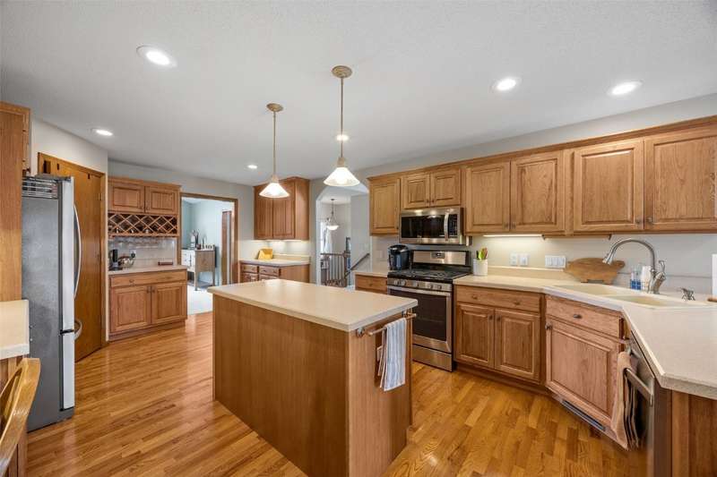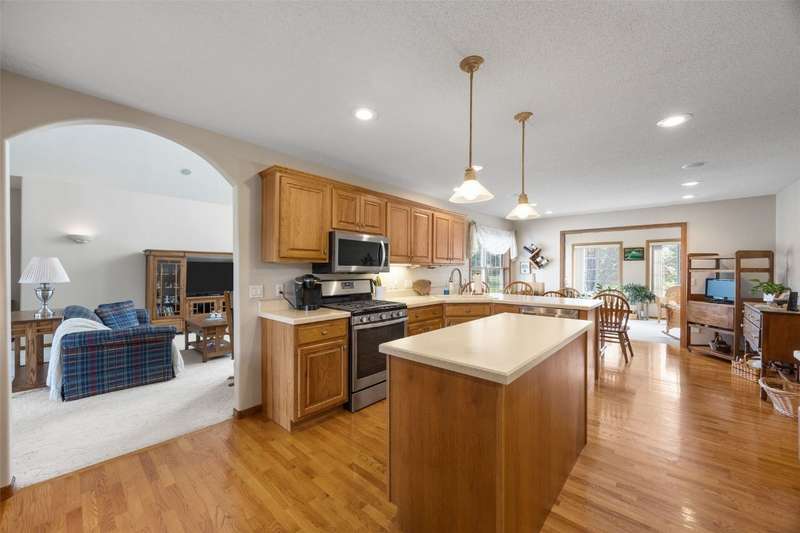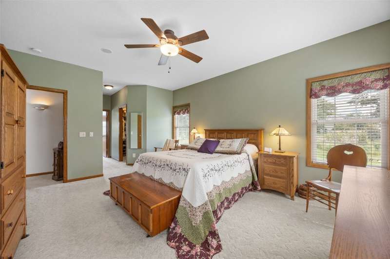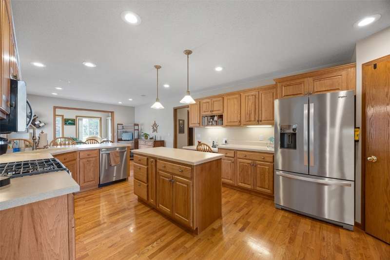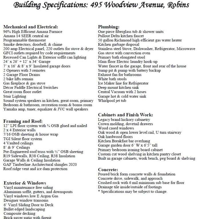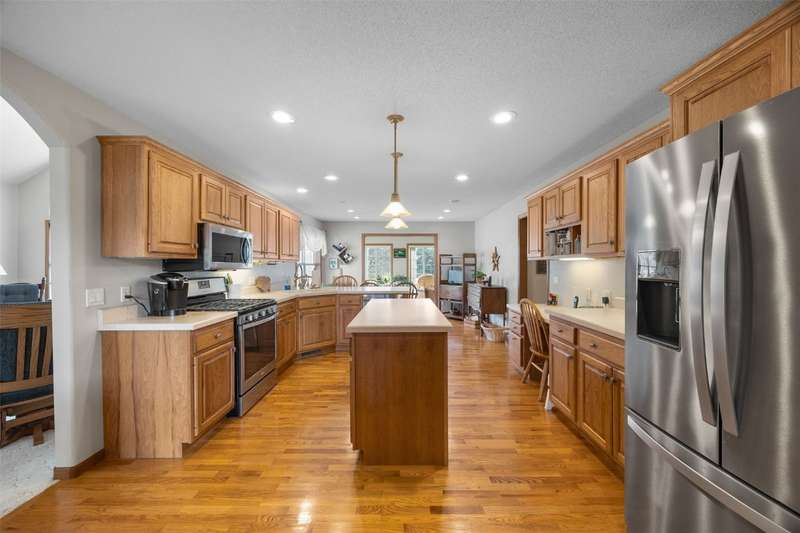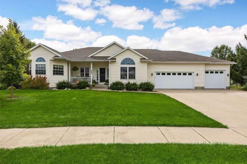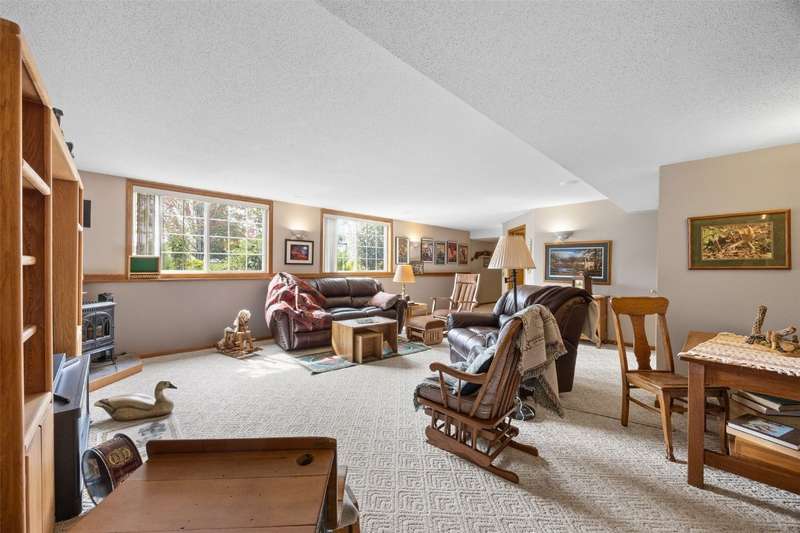 Rare find In Town Robins Acreage with 1.16 acres of manicured lawn, landscaping, and mature trees with city water and sewer. Custom built 3,770 finished square footage home by Wood Construction offers 2,240 main level square footage and 1,530 finished lower. The sprawling main floor offers casual gathering spaces, bonus rooms or formal areas. A welcome entrance greets you with hardwood flooring, a u-turn open stairway, and soaring ceilings and windows with Southern exposure. A cooks delight kitchen boasts hickory cabinets with solid wood dove tail drawers, a pantry, convection oven with gas cooktop, under cabinet lighting, and plenty of counter space. The Four seasons room extends from the kitchen and opens to a 16’ x 20’ composite deck with stairs to the acreage and patio with fire pit. The primary suite has dual walk-in closets and a bathroom offering dual sink vanities, walk in shower and a whirlpool tub. The lower level features a recreation room with a cast-iron gas stove, oversized bedrooms with walk in closets, and bonus rooms. Additional benefits include a home sound system, central vacuum, built in storage, 2 gas fireplaces, custom cut blinds, 4 vaulted ceilings, mudroom area off the garage, and buyer 1 year home warranty. The 3 + car garage offers 1,032 square feet with the third stall extending 34' deep and a 8' x 9' door, an additional 6' x 6'5 garden door, 2 bike lifts, cabinets and workbench, hot and cold water, and stairs to the lower level. Average monthly gas: $70, electric: $122. High speed fiber option through USA Communications.