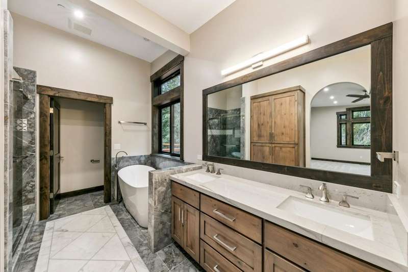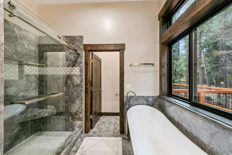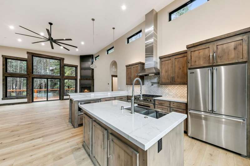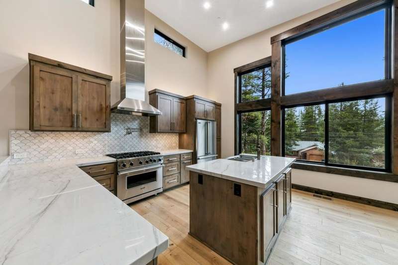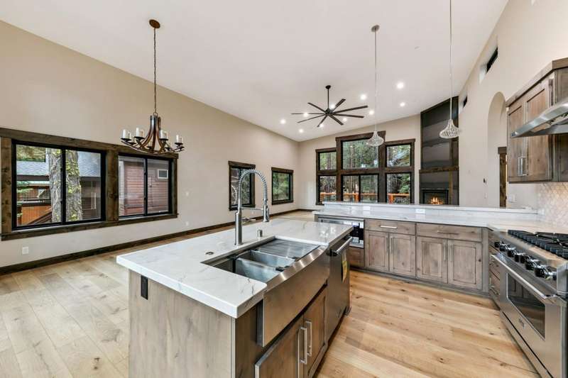Luxurious Brand New mountain modern home, located in the highly sought after Tahoe Donner community. Features an open concept living room with gas fireplace, vaulted ceilings and gourmet kitchen that includes Viking stainless appliances, custom alder cabinets & quartzite counters. Beautiful and spacious lot with tree views from every window. Upper level redwood deck, plumbed for natural gas for outdoor grilling that overlooks the serene backyard setting. Primary suite includes gas fireplace with stone surround, walk in closet & spa-like bath with marble walk-in shower and free standing soak tub. Includes a bonus room/possible 4th bedroom with access to the backyard. Central Heating & Air Conditioning with Dual zoned Nest, Pre-wired to charge electric vehicle in garage. Backyard includes natural landscape and paver patio with 220V installed for hot tub. Attached 2 car garage that is fully insulated and plenty of room to store lake toys and outdoor gear. HOA includes pool, golf, tennis, ski resort, boat launch & more. Tahoe Donner Trout Creek Recreation Center is just a 5 minute drive away.