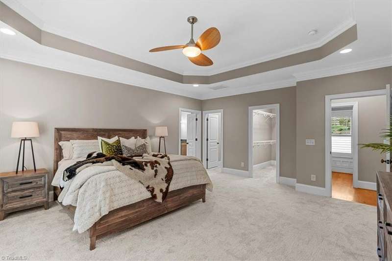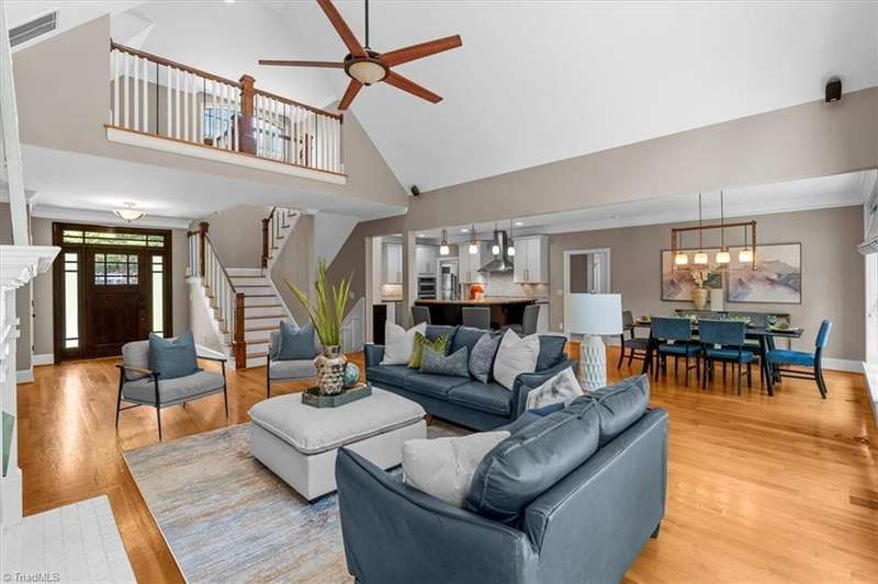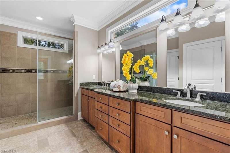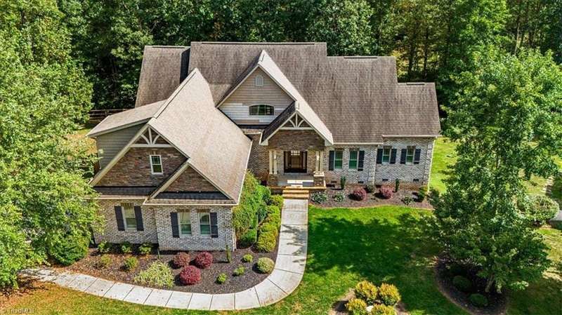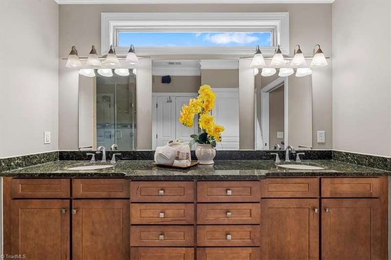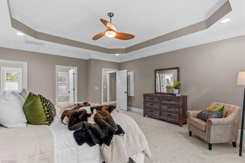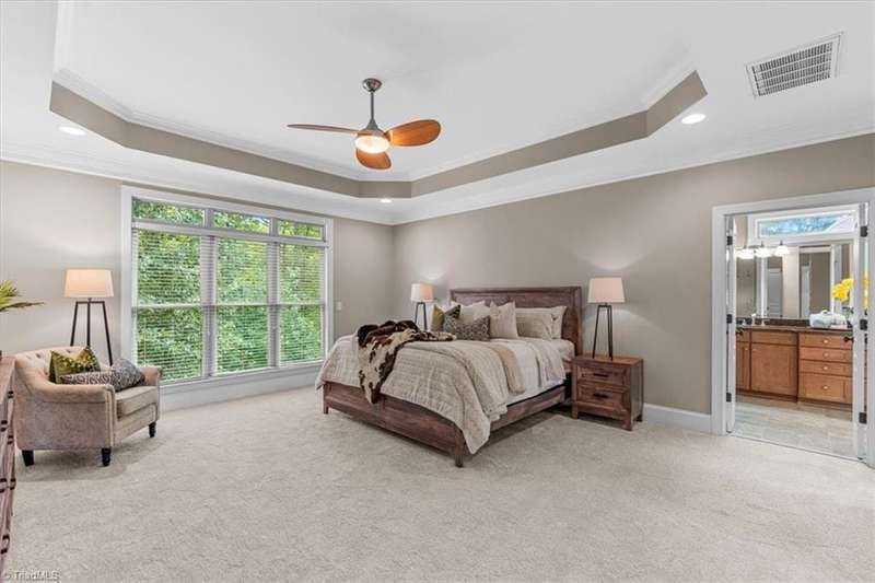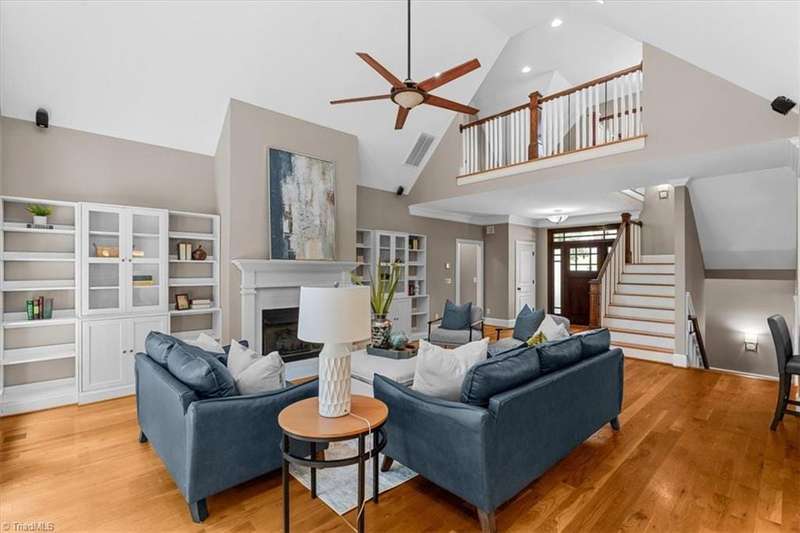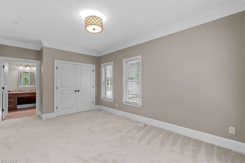 Tucked away on one of the prettiest cul-de-sac lots in beautiful Jessup Ridge, this custom basement home is filled with craftsman details and designed for todays lifestyle. An open-concept main level is anchored by the light filled 2-story great room with vaulted ceilings and cozy fireplace. The chefs kitchen boasts leathered quartz countertops, bar seating, stainless steel appliances a convenient pantry and breakfast area. A main level primary suite offers a quiet retreat and has dual walk-in closets, and a custom tile shower. A 2nd bedroom suite on the main level is ideal for guests or a home office. Upstairs, youll find a spacious bedroom, bonus room and a generous loft area plus easy-access walk-in storage. The finished basement is a true bonus, featuring a 4th bedroom with adjacent full bath and a large rec room with wet bar. Step outside to a totally private, fenced backyard with a paver patio, fire pit, and plenty of space to enjoy. Northern Guilford schools.