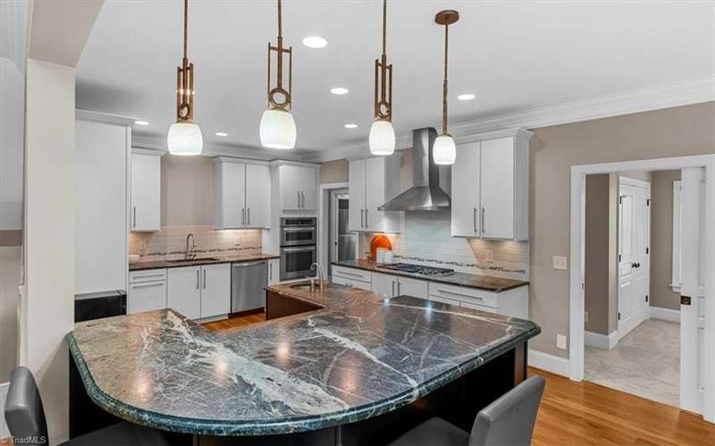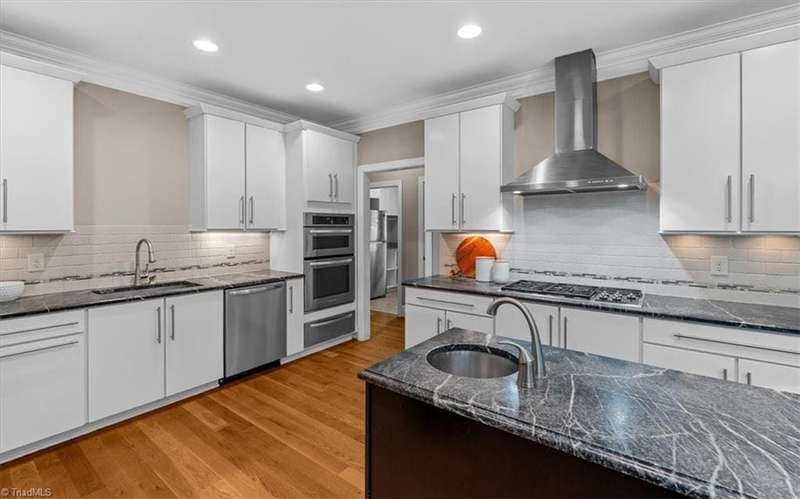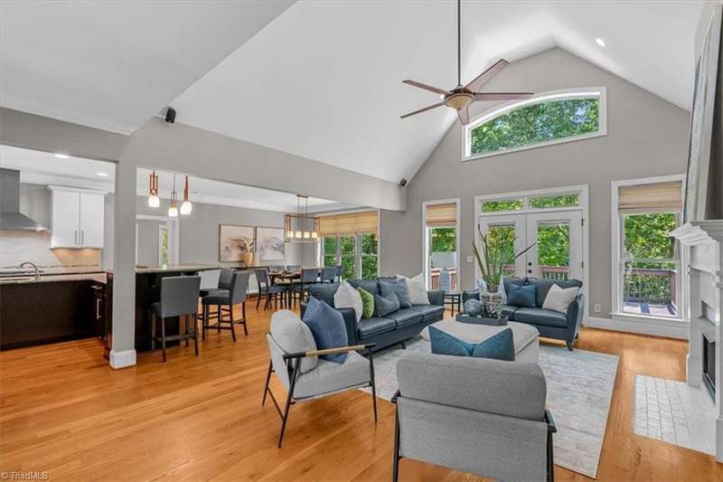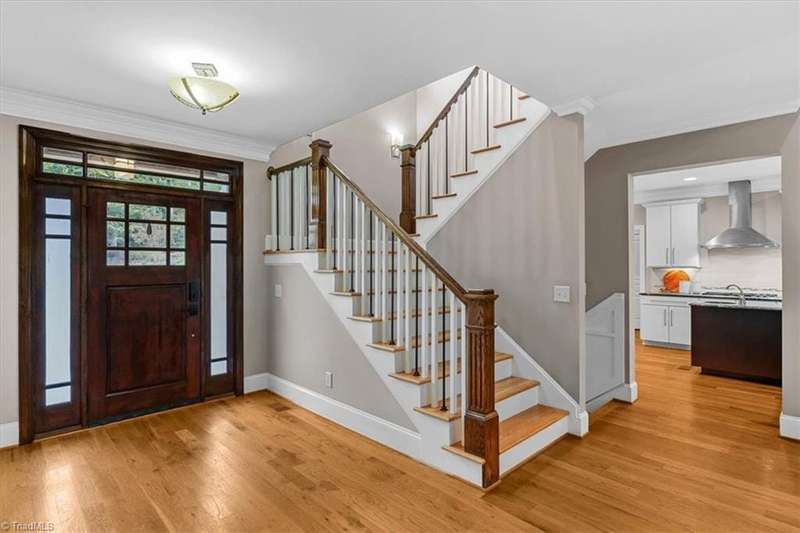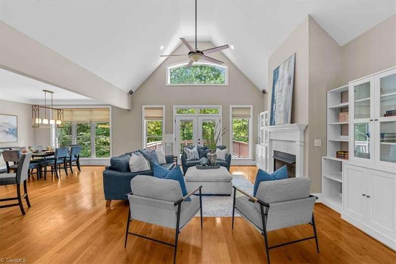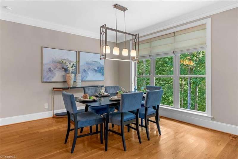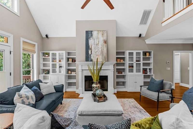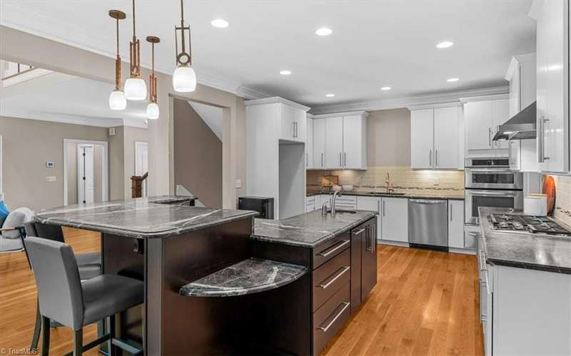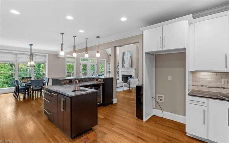 Tucked away on one of the prettiest cul-de-sac lots in beautiful Jessup Ridge, this custom basement home is filled with craftsman details and designed for todays lifestyle. An open-concept main level is anchored by the light filled 2-story great room with vaulted ceilings and cozy fireplace. The chefs kitchen boasts leathered quartz countertops, bar seating, stainless steel appliances a convenient pantry and breakfast area. A main level primary suite offers a quiet retreat and has dual walk-in closets, and a custom tile shower. A 2nd bedroom suite on the main level is ideal for guests or a home office. Upstairs, youll find a spacious bedroom, bonus room and a generous loft area plus easy-access walk-in storage. The finished basement is a true bonus, featuring a 4th bedroom with adjacent full bath and a large rec room with wet bar. Step outside to a totally private, fenced backyard with a paver patio, fire pit, and plenty of space to enjoy. Northern Guilford schools.