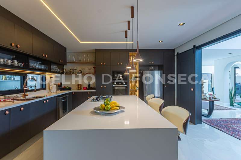 O imóvel conta ar condicionado em todos os ambientes, 4 amplas suítes, escritório, home theater, amplas salas, copa, maravilhosa cozinha moderna, super equipada com móveis e eletrodomésticos de alto padrão que é um verdadeiro refúgio para os amantes da culinária. O espaço gourmet, equipado com tudo o que você precisa para preparar refeições especiais, é o local perfeito para receber convidados.