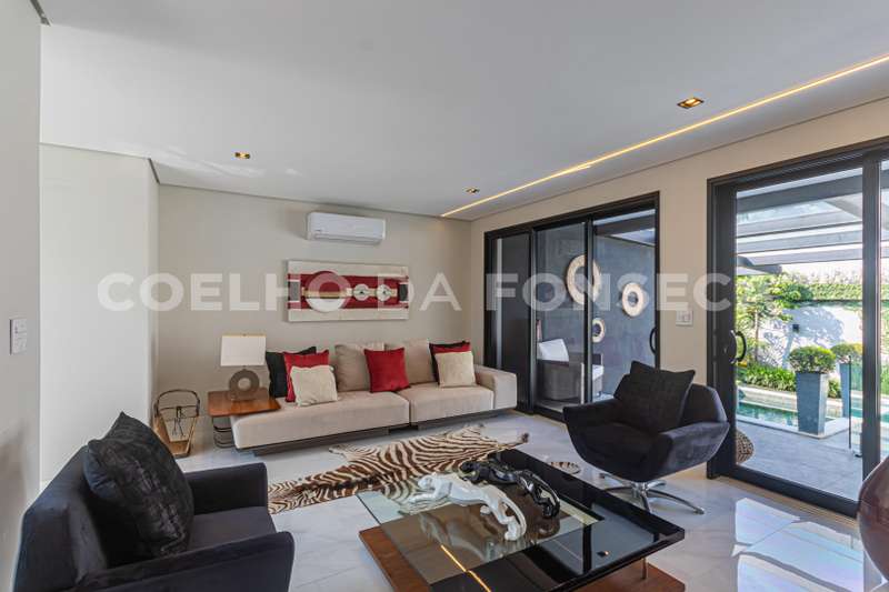 Casa no condomínio ALPHAVILLE 2, com 750m² área construída, 5 dormitório(s), 4 suíte(s), 8 vaga(s), 6 banheiro(s), piscina, escritório, depósito, mobiliado (a), ar condicionado, dep. de empregados, reformado (a), aquecedor solar, pé direito duplo, casa terrea.