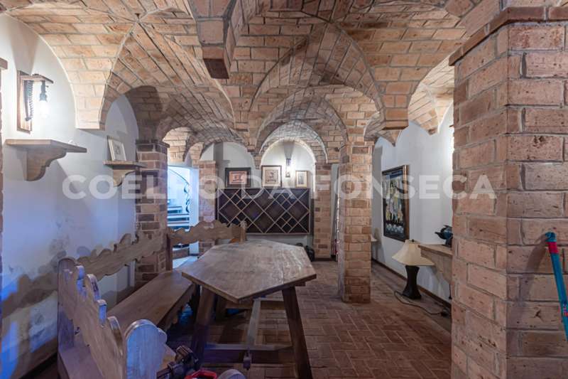Um dos destaques desta propriedade é a adega com estilo medieval, um ambiente charmoso e aconchegante perfeito para degustar um bom vinho ou simplesmente relaxar.