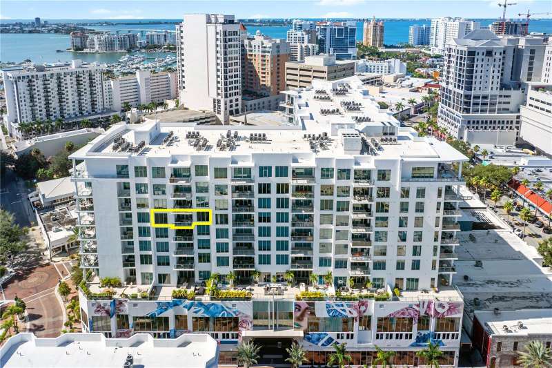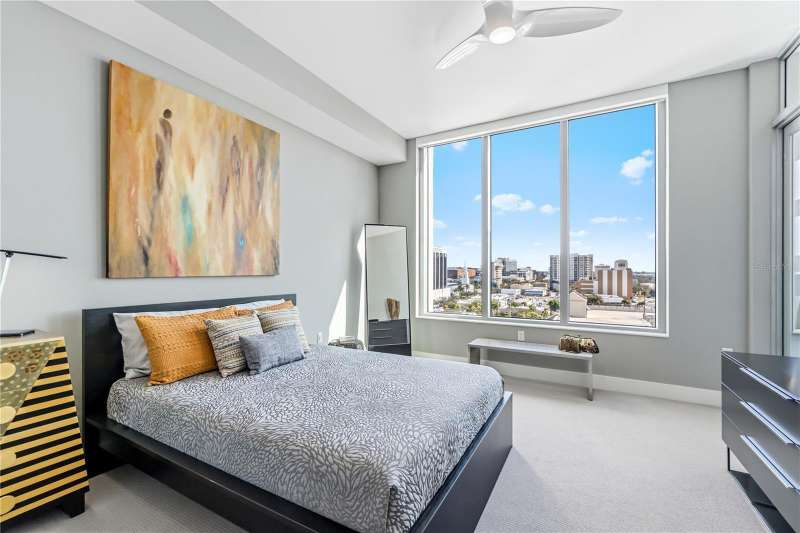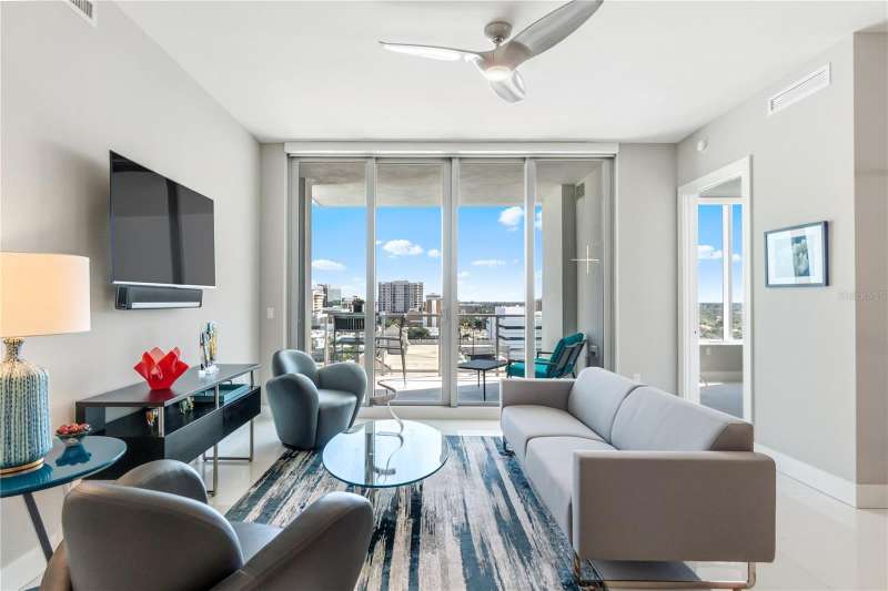 Welcome to The Mark, where contemporary design meets the vibrant, walkable lifestyle of downtown Sarasota. Built in 2019, this amenity-rich residence places you just steps from world-class dining, boutique shopping, and cultural attractions, yet offers the peace and privacy of a luxury retreat. With 24-hour concierge, gated underbuilding parking, and a secure lobby, The Mark provides the lock-and-leave convenience…all outside the flood zone for added peace of mind. This stylish 2-bedroom, 2.5-bath condo with a den and laundry room lives beautifully with soaring ceilings, floor-to-ceiling impact windows, and over $60,000 in thoughtful upgrades. The open-concept layout flows seamlessly from the designer kitchen to the living area framed by sweeping, unobstructed city views. Two ensuite bedrooms offer comfort and privacy, each with custom closets and spa-like baths featuring Grohe fixtures and quartz vanities. Watch the sunrise on your east facing private balcony overlooking the city skyline. Additional highlights include two premium parking spaces, a same-floor storage unit, automated roller shades, and 10-foot sliding glass doors that bathe the interior in natural light. Residents at The Mark enjoy access to an expansive suite of resort-style amenities — a heated saltwater pool and spa, cabanas, state-of-the-art fitness center with spin room, club lounge, news room, fire pit lounge, and outdoor grilling and dining areas. It’s urban living at its finest — elevated, effortless, and undeniably Sarasota.