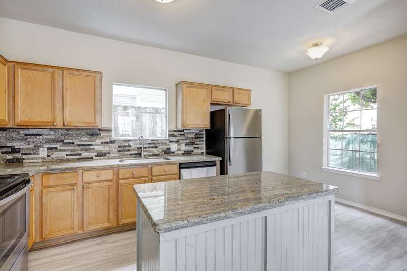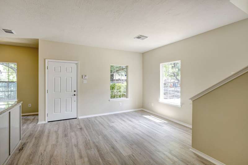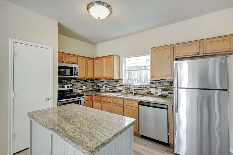 Located in Midtown, this home offers convenience and comfort just minutes from restaurants, shops, and parks. Featuring vinyl plank flooring throughout, stainless steel appliances, and granite countertops in the kitchen, which opens to a cozy breakfast nook and spacious living area, perfect for entertaining. The first floor also includes a den, a bedroom or home office, and a full bath. Upstairs, the primary suite features a walk-in closet and dual vanities with granite counters, along with two additional bedrooms and a utility room. Two dedicated parking spots provide added convenience. Per Landlord