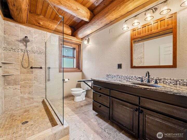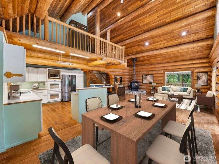 Custom log home tucked away on a private 5.07 acres w/ 2400 SQ FT Shop! Soaring ceilings welcome you into this open concept home w/ spacious living areas! Primary suite w/ jetted tub, walk in shower, huge WIC & fantastic private deck. 3 add'l generously sized bedrooms. Walk in utility room/pantry! Upstairs loft area. The outdoor living area boasts a massive patio w/ stone fireplace & hot tub perfect for entertaining! Enjoy the backyard w/ minipark, tree swing & firepit. The (40X60) shop is complete w/ a 640 SQ FT finished area perfect for a home gym, home office or ? Don't miss the 640 SQ FT 1 bed/1bath ADU! Trails for quads & motorcycles! RV Parking! Garden Area! Outbuildings! Generator! Close to WA Nat'l! Minutes to 18! A must see home!