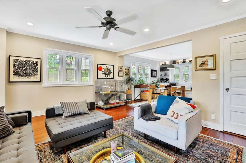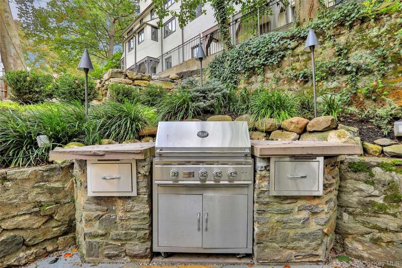 Welcome to 5 Kensington Terrace, a light filled townhouse with three exposures, nestled in the vibrant town of Bronxville -- a short 30-minute Metro North ride to Grand Central Station, steps to train, town and school. Upon entering Kensington Terrace, youll be greeted by a beautifully landscaped courtyard that sets the tone for this charming end unit. This home features a welcoming covered front porch, along with a lovely backyard patio and garden, complete with built in BBQ and cook space perfect for relaxing and entertaining outdoors. Inside, the first floor boasts a spacious living room, with a cozy wood-burning fireplace, bright dining area and white kitchen equipped with updated stainless steel appliances. Enjoy easy access to the private patio from the kitchen. Experience year-round comfort with central air and updated heating system. The second floor offers two bedrooms, a well-appointed hall bath with bathtub, and ample closet space. At the end of the day, retreat to the primary suite on the third floor to relax, with ensuite bath. The finished basement provides additional space for play, office or a home gym and laundry area has a new washer and dryer. Dont miss the opportunity to visit this delightful home and let the new memories begin. Furniture in photographs is from prior resident, this home will be unfurnished.