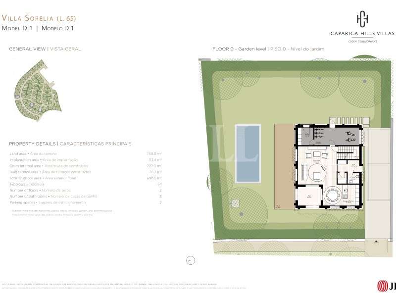 Moradia T4 nova com 222 m2 de área bruta de construção, jardim e piscina privativos, no Caparica Hills Villas, na Costa da Caparica. As unidades do Caparica Hills Villas oferecem garagem privativa, elevador, amplas zonas de lazer e espaços de arrumação. A construção incorpora elementos sustentáveis como painéis de madeira, coberturas ajardinadas e vegetação local, garantindo eficiência energética e conforto durante todo o ano. O empreendimento integra-se num resort completo que inclui o Hotel IHG Crowne Plaza Caparica Lisbon, instalações de bem-estar com spa, fitness club e estúdio de yoga, um campo de golfe de 9 buracos e uma zona comercial com 20 lojas boutique. Nos planos futuros estão previstos um centro desportivo e uma escola. A localização do Caparica Hills Villas combina tranquilidade e conveniência: a 5 minutos do mar, a 15 km do centro de Lisboa (15 minutos de carro) e próximo do aeroporto principal. Para compras diárias, o supermercado encontra-se nas imediações. O Caparica Hills Villas representa uma proposta de valor equilibrada para quem procura um investimento imobiliário ou residência numa das zonas de maior potencial de valorização da Grande Lisboa, conjugando proximidade à capital com a qualidade de vida junto ao mar. Categoria Energética: A #ref:90867