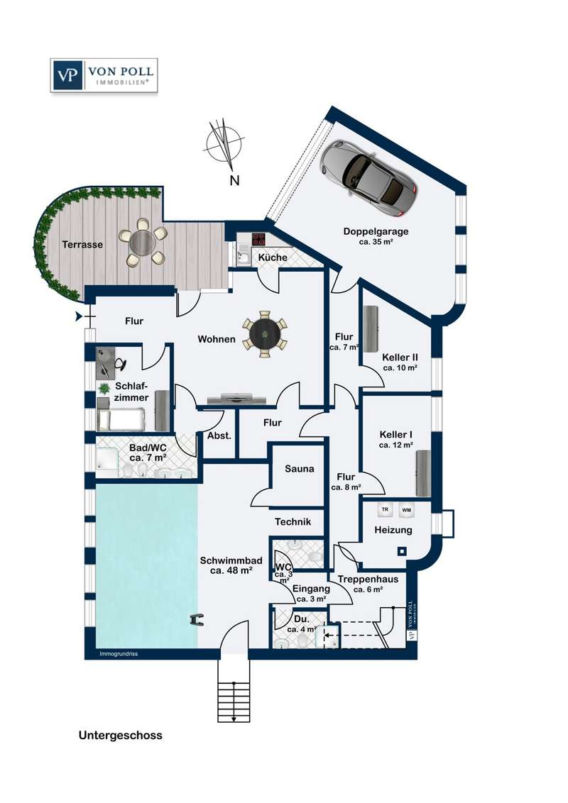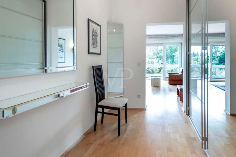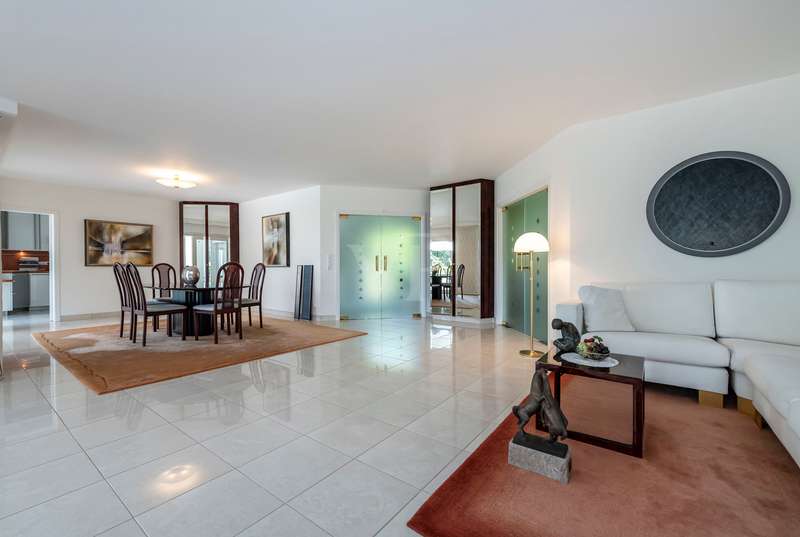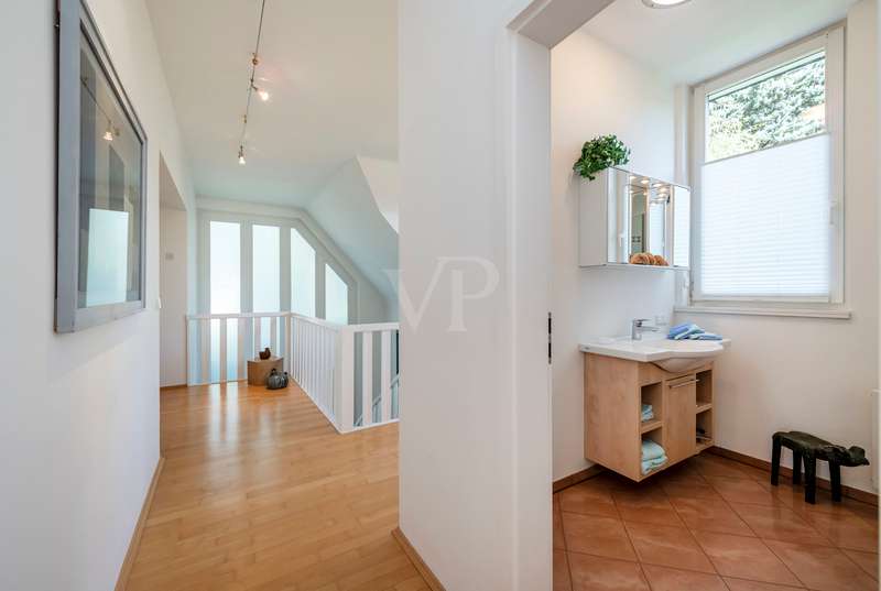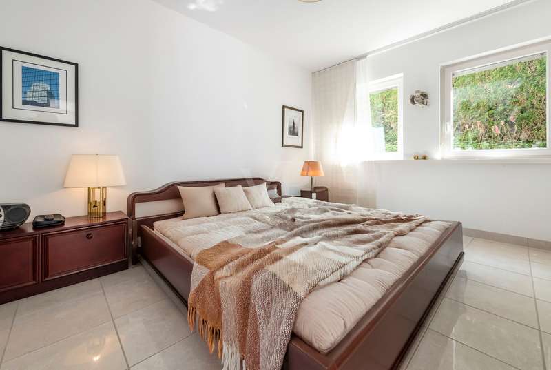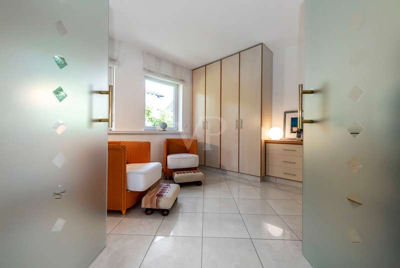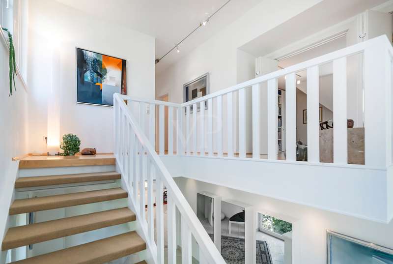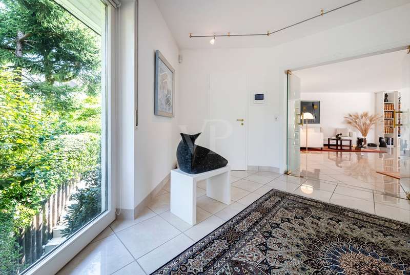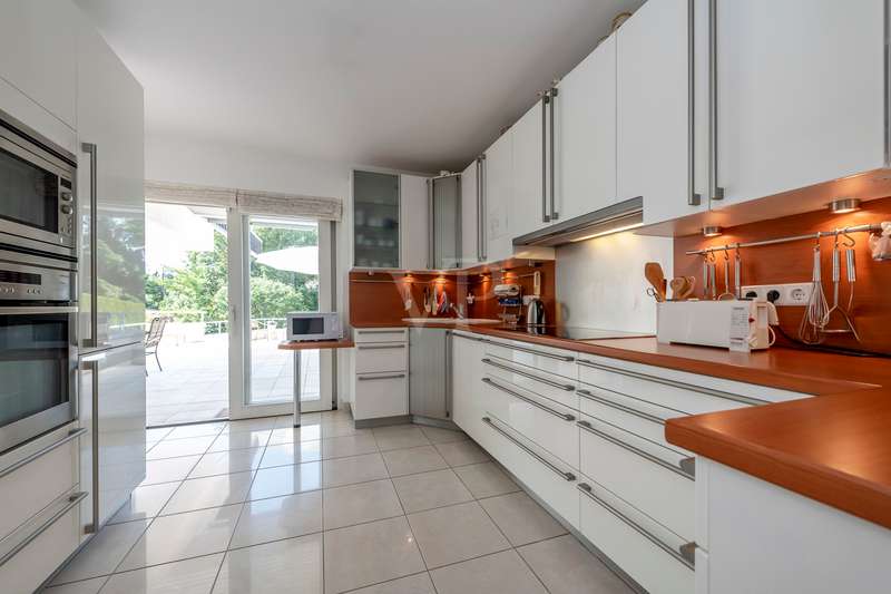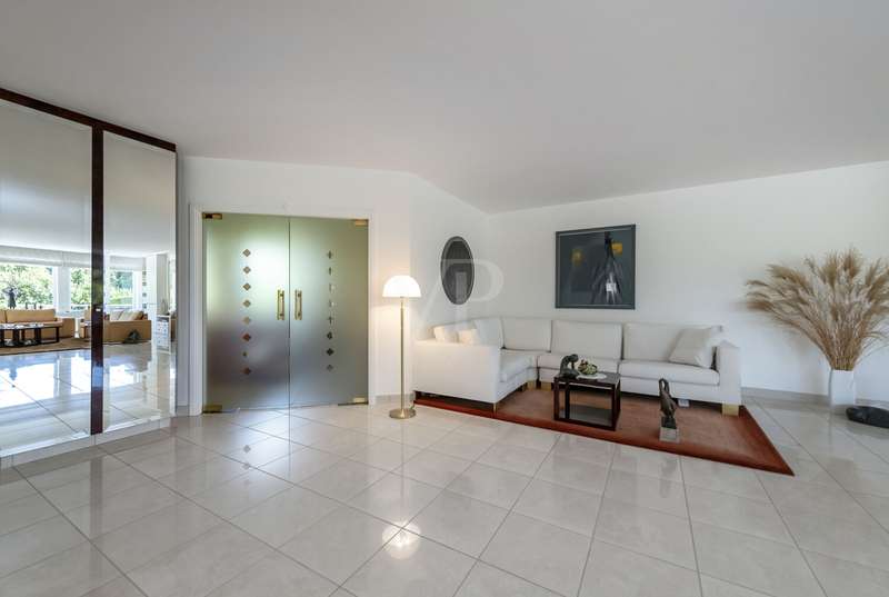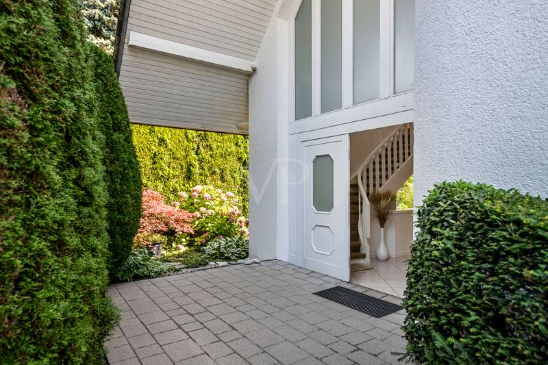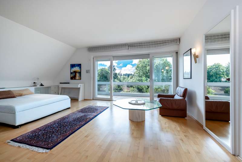 Where character meets space and tranquillity... in this prestigious, timeless entrepreneur's villa you will find not only imposing elegance but also sufficient privacy, both in the house and on the tastefully landscaped grounds! Are you looking for an individual retreat in a quiet location? Then you will find your time-out from everyday life with your large family here in Georgenborn. In addition to generously proportioned rooms and fascinating views and light axes, this home offers you plenty of space for family members, a home office, guest or leisure area.... You will be impressed by the timeless, functionally sophisticated room layout, high-quality materials and the beautifully landscaped plot around the two terrace levels! The entrance floor with its representative character impresses with its spacious, open living area with its unobstructed views of the lush garden. From here you can access the two split-level terraces of almost 100m² - the ideal starting point for summer celebrations... The functional kitchen can be extended at any time and, in addition to the practical study or TV room, you will of course also find a guest WC on this level. On the upper floor, the family has their private retreat, master bedroom with master bathroom, dressing room and 2 further rooms for the children as well as a smaller shower room. On the garden level, which can also be accessed through the double garage, there is a spacious granny apartment with its own terrace, kitchen solution, shower room, bedroom and living area with its own access. The highlight of course is the private spa area with a wonderful indoor pool and sauna area - here you can relax from everyday life all year round! Of course, there are also various cellar rooms and a double garage! You enter the property through the electric gate. Please understand that we may request a credit report from you before viewing and look forward to receiving your inquiries!