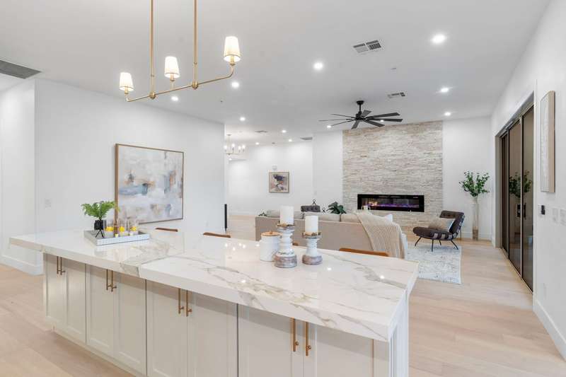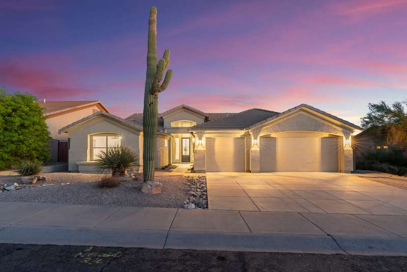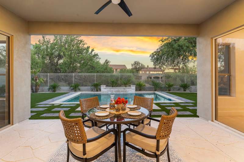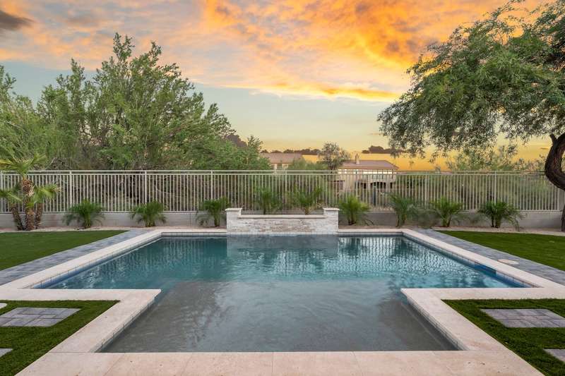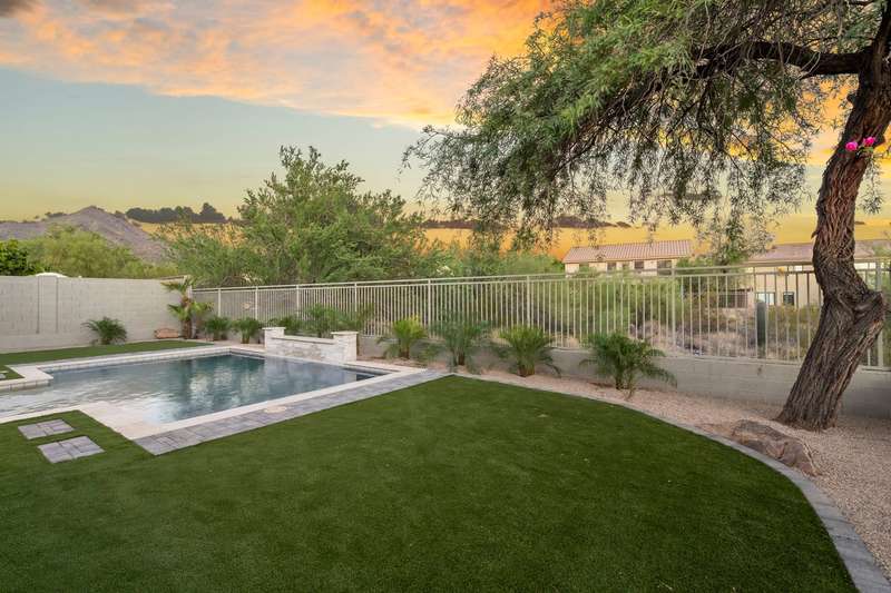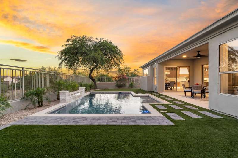 Stunning high-end remodel in The Summit at McDowell Mountain Ranch, backing to a wash and filled with natural light upon entry. Redesigned floorplan with 4 bedrooms, 3 baths, hardwood floors, and formal dining. The great room showcases an elegant electric fireplace, while the chef's kitchen is ideal for entertaining family and friends and offers dual islands, custom buffet, shaker cabinetry, and premium KitchenAid appliances including a six-burner gas range with griddle, custom vent, built-in refrigerator, and microwave drawer. Porcelain countertops and custom cabinetry extend throughout. The spa-inspired primary retreat is spacious and features a soaking tub, glass shower, washer/dryer, and generous storage. A new pool with water feature & fresh turf completes this exceptional home. Award-winning McDowell Mountain Ranch is a premier master-planned community located in North Scottsdale. Situated at the foothills of the McDowell Mountains, enjoy the beautiful desert serenity yet also have all the conveniences of living "in-town" just outside the neighborhood. The 101 Freeway is 5 minutes away, as well as restaurants, shopping, groceries, and so much more!