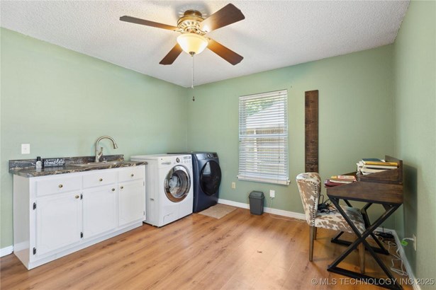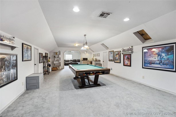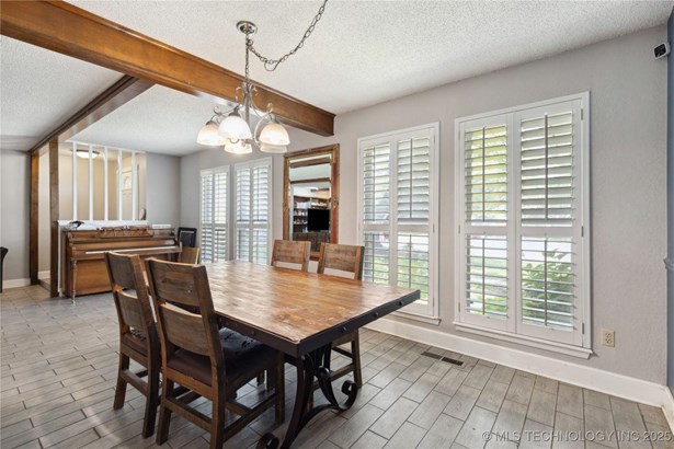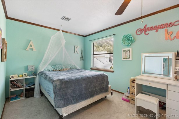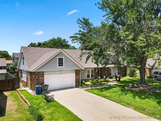 BIG on Space. Loaded with Perks. And Tucked into One of South Tulsa's Sweetest Spots. Welcome to 9208 S 70th East Ave - where flexibility, function, and flair come together in one standout home. Tucked into a peaceful cul-de-sac in highly rated Jenks Schools-just a short stroll to a park, pond, and walking trail-this 4-bedroom, 3-bath home is anything but ordinary. Inside, you'll find beautiful wooden blinds across the front and back, rich tile flooring, and a seamless living/dining combo with a cozy breakfast nook nearby. The kitchen is a true highlight-bright and cheerful with granite counters, glass-front cabinets, two generous pantries, and pullout shelving that makes staying organized effortless. Downstairs, the private master suite features an ensuite bath with Brazilian granite vanities and updated tile work. Newer vinyl windows enhance comfort and efficiency throughout the home. Upstairs? It's a dream-two large bedrooms and a massive game room (pool table stays!) offering endless options: second living, home office, bedroom, or homeschool space. The oversized laundry room does more than clean clothes-it's a flexible space with a sink, extra cabinet storage, and a closet, perfect for a home office, craft area, or even a wrapping station. And then there's the garage: 4-car tandem, 2-cars deep, with enough room for your boat, ATV, or workshop-and yes, it includes a built-in indoor safe room. This is the kind of home that checks boxes you didn't even know you had. (NEW roof in May 2023.)