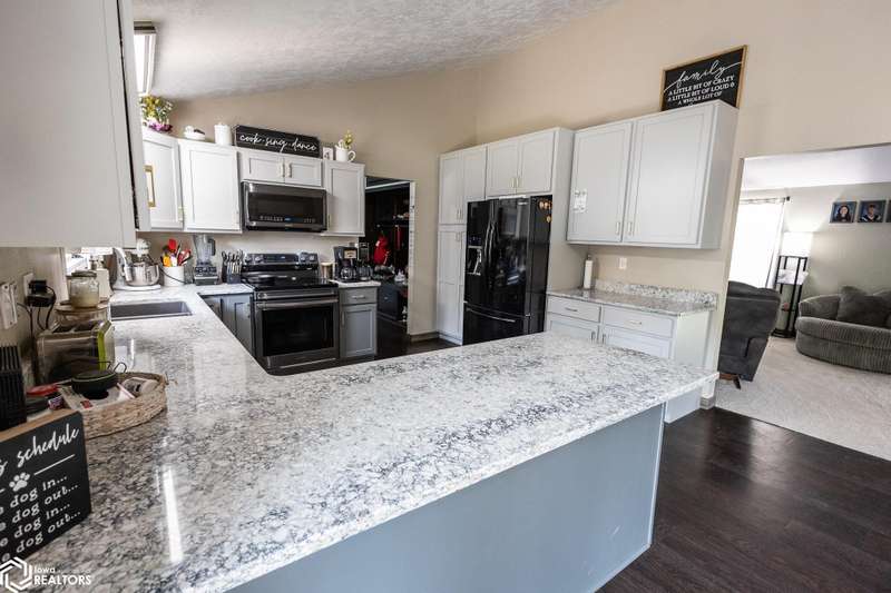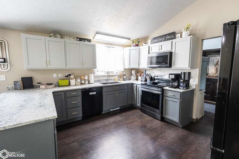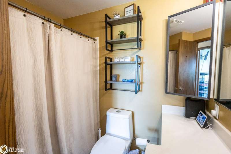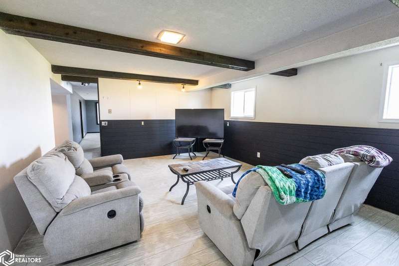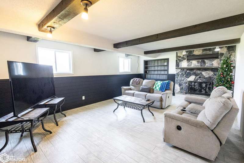 Stunning 4-Bedroom, 3-Bathroom Home in Quiet Belmond Neighborhood. Welcome to your dream home in Belmond. This beautifully updated 4-bedroom, 3-bathroom home is nestled in a peaceful neighborhood and offers modern living with timeless charm. Step inside to find a completely updated interior featuring an open-concept layout, large dining and living room, new flooring throughout, updated kitchen, sleek cabinetry, and stylish countertops perfect for both everyday living and entertaining. Enjoy the upper deck with direct access from the dining room and kitchen through the sliding patio doors. The finished basement features a large living room with a cozy fireplace, large bedroom, additional large bonus room, and a new bathroom. The basement also has a shop area with access to the garage. Outside you'll enjoy the two-story composite deck that is perfect for outdoor entertaining, expansive fenced backyard, including a basketball court with a new concrete pad. There is also a sand point for an outdoor water source. This move-in-ready home combines modern updates with wonderful amenities a rare find in Belmond! You don't want to miss this! Call your realtor today to schedule a showing!