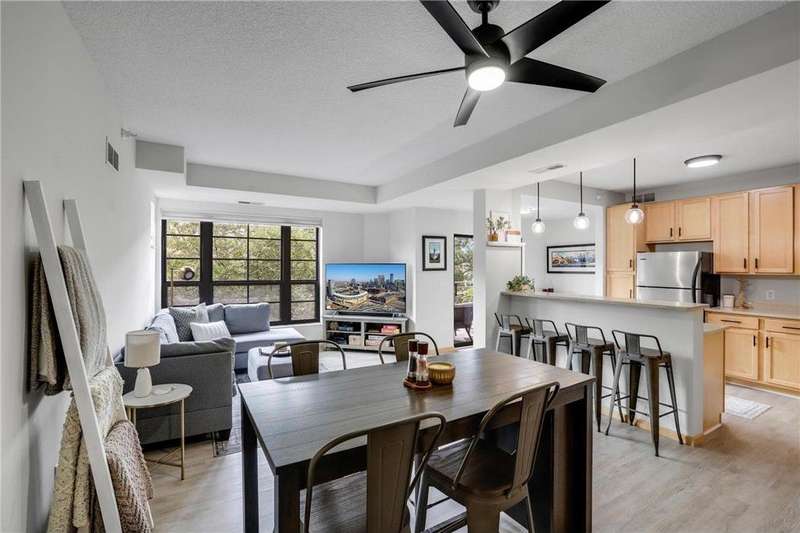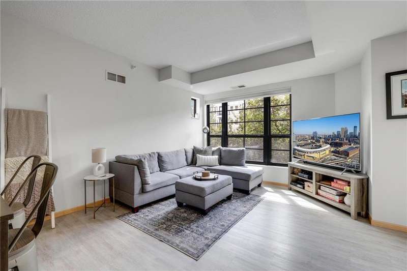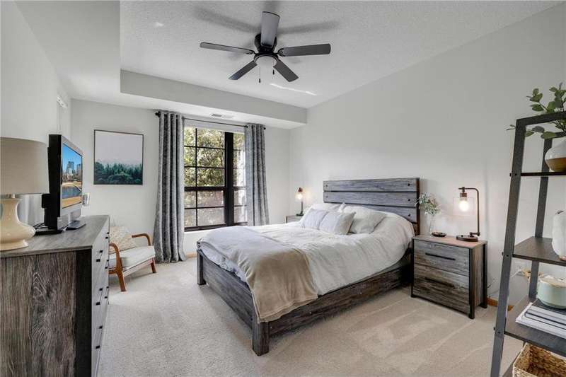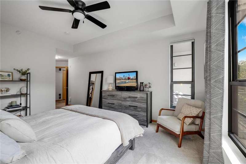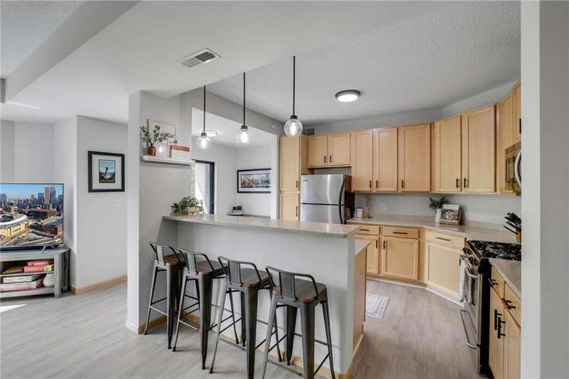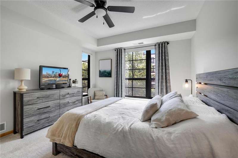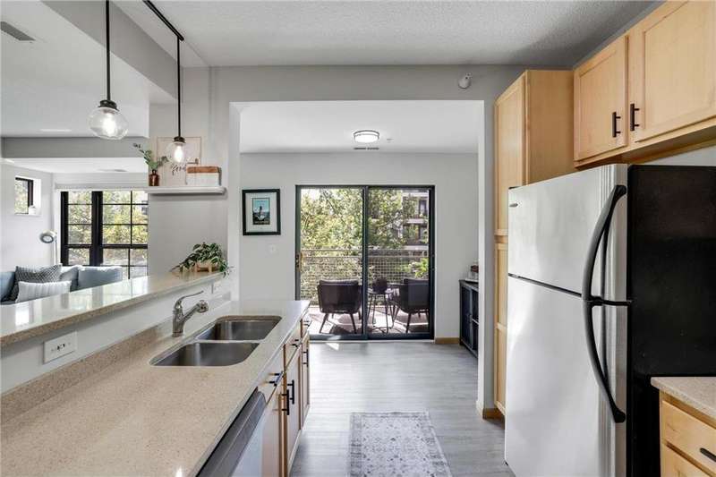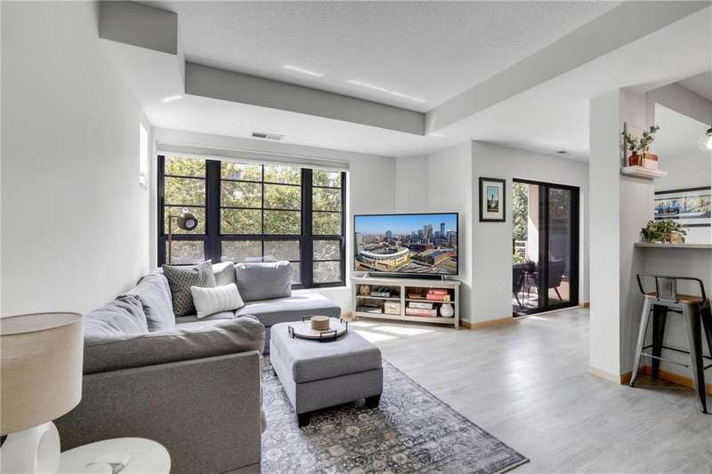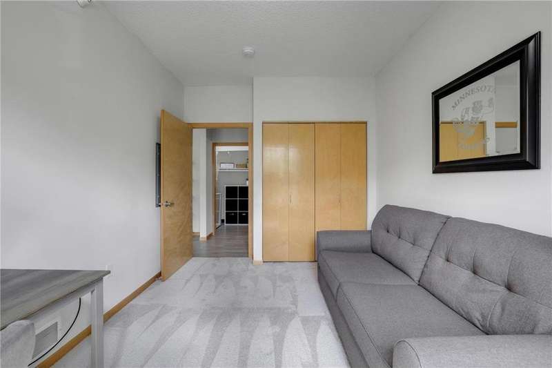 Gorgeous second floor condo with stunning updates throughout at Emerald Gardens. Beautiful design, wonderful natural light in every room, tree top views, and an outstanding layout with bedrooms on both sides of the expansive living space. Fantastic kitchen features quartz countertops, gas range, tons of cabinet space, and a center island overlooking main living spaces and the private balcony. The primary suite features an ensuite bathroom with dual vanity, walk-in shower, and a massive walk-in closet. Additional highlights include a sunlit guest bedroom or office, second full bath, and laundry room with great storage. Association dues includes cable TV and high-speed internet - a rare find! Brand new furnace and water heater just installed - all you need to do is move in! This is a premier location steps to light rail, Mississippi River Parkway trails and recreation, University of MN, vibrant restaurants, grocery stores, and retail. Quick and easy access to Hwys 280 and I94, and both downtowns. Welcome home!