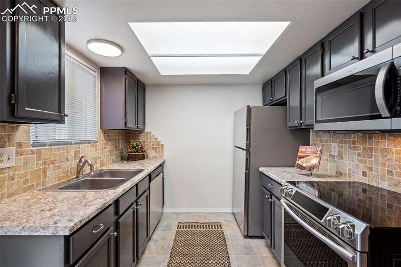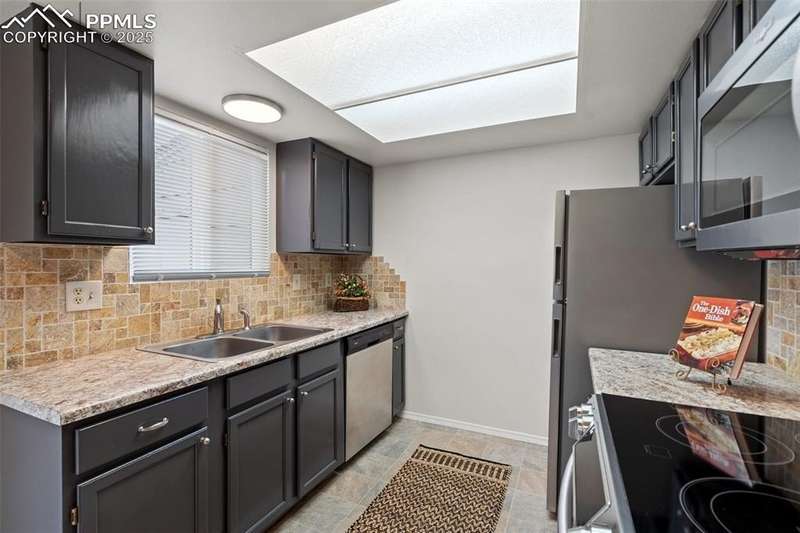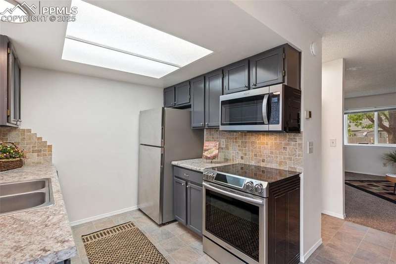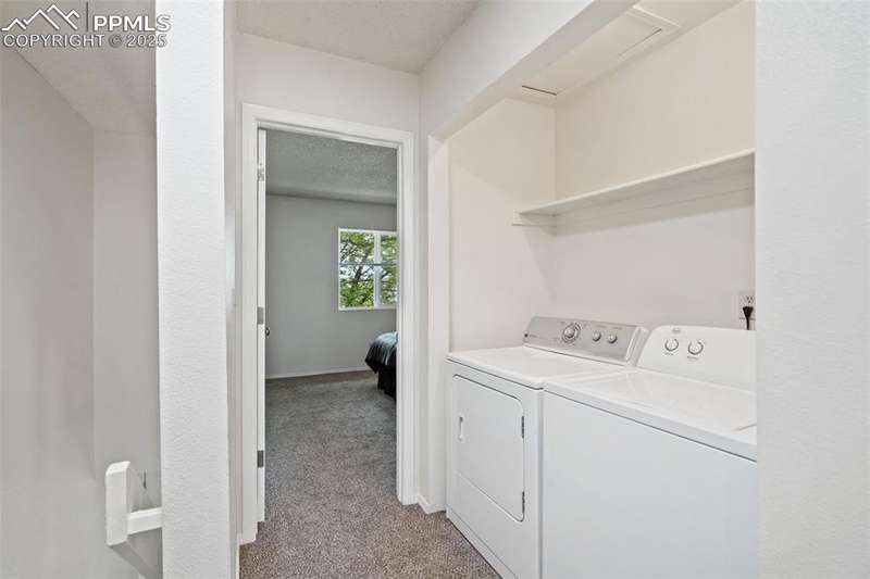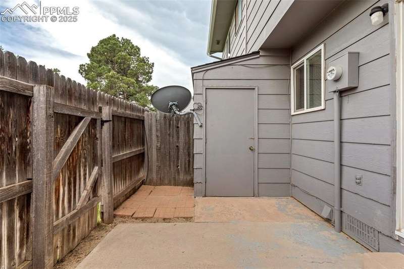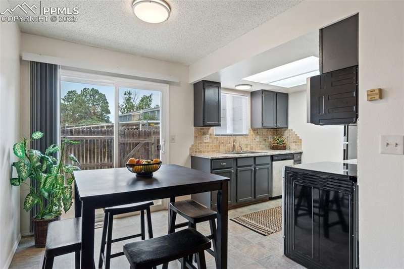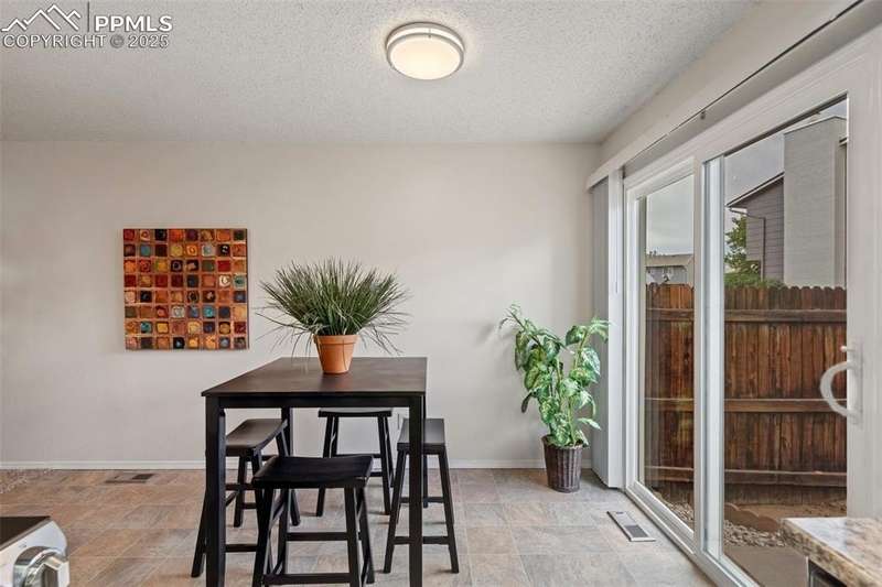 Tucked into a peaceful enclave near the Powers and Marksheffel corridors, this charming townhome offers the perfect balance of quiet living and convenient access to shopping, dining, and commuter routes. The open main level features a spacious living area with a cozy wood-burning fireplace, a dedicated dining space with walk-out access to the private fenced patio, and a light and bright kitchen with stainless steel appliances, a decorative tile backsplash, and a sunny window. A convenient half bath completes the main floor. Out back, enjoy a fully enclosed patio with a storage closet and gate access to the community green space. Upstairs, you’ll find two generously sized bedrooms, a full bathroom with a tub/shower combo, and a laundry closet with washer and dryer included. The home features neutral paint and carpet throughout, along with updated lighting and plumbing fixtures that give it a fresh, modern feel. Clean, comfortable, and move-in ready—this low-maintenance home is an ideal choice for easy Colorado living.