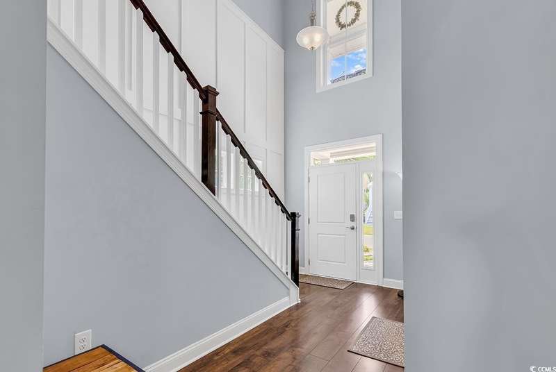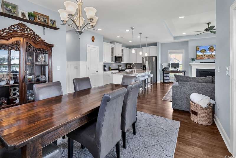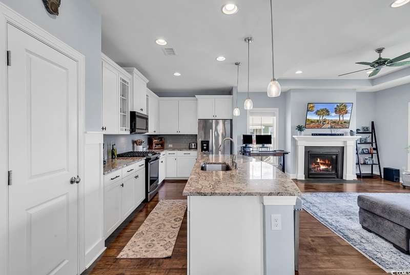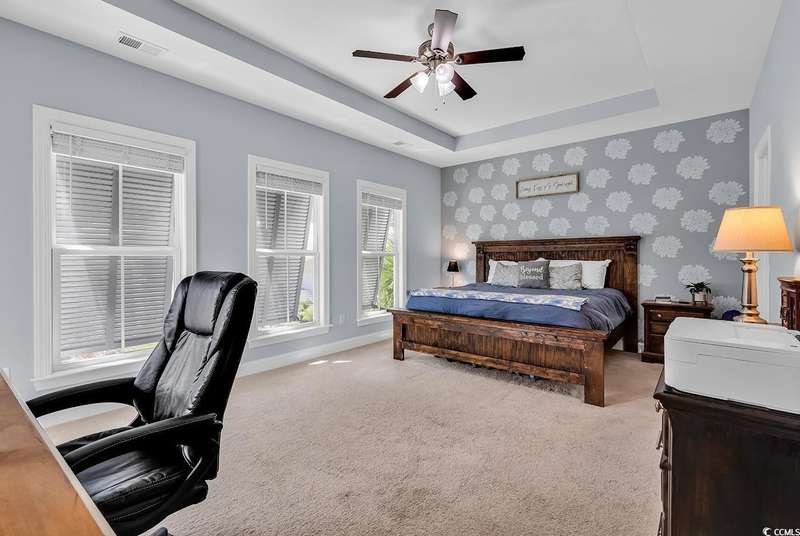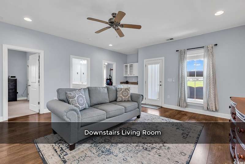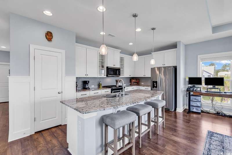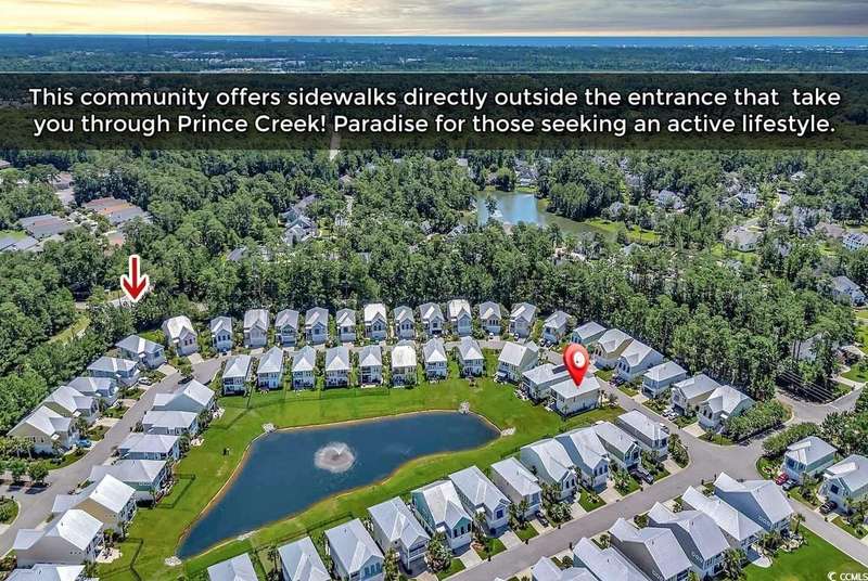 Welcome to a home that perfectly captures the relaxed elegance of coastal living, nestled in the peaceful and private community of Wilderness Pointe, part of the greater Prince Creek master-planned development in Murrells Inlet, South Carolina. This thoughtfully designed home features durable concrete fiber siding and a sleek metal roof, combining timeless craftsmanship with lasting durability. Inside, you'll find spacious living areas both upstairs and down. Unlike most homes in the neighborhood, there's no stairway needed to reach the downstairs living room and bedrooms, offering convenience and ease of access. The home also includes a built-in elevator shaft, giving you the option for a future elevator to be installed. Step outside to a large backyard that overlooks a tranquil pond, complete with a gentle water feature that brings a calming ambiance to your everyday life. A spacious side yard easement offers extra room and privacy, creating a rare sense of openness and freedom. The home is powered by natural gas and includes gas service for the fireplace, cooking, hot water, and heating. Throughout the upstairs and downstairs living areas, you’ll find beautiful hard surface flooring that’s both elegant and easy to maintain. Relax and unwind on the screened-in back porch as you enjoy peaceful views of the pond, or sip your morning coffee on the private front porch located just off the large master bedroom. Coastal design touches are found throughout, including craftsman-style trim, classic wainscoting, and tray ceilings that add depth and character. The master suite is generously sized, offering plenty of space to relax. The en suite bathroom includes a spacious walk-in tiled shower, a separated owner's closet, and a layout that balances comfort with sophistication. Life in Wilderness Pointe is both serene and social. Set in the rear of Prince Creek, this quiet community enjoys a sense of seclusion while being just steps from a vibrant lifestyle. Sidewalks extend from just outside the neighborhood entrance, winding throughout Prince Creek and perfect for walking, jogging, or cruising by golf cart. Residents also enjoy access to the Prince Creek West amenity center, which includes a scenic nature trail, two pools, a kiddie pool, a large covered pavilion with a fireplace, and a variety of outdoor activities including bocce ball, horseshoes, tennis, pickleball, and basketball. Prince Creek spans nearly 2800 acres and is built around South Carolina’s only Tournament Players Club golf course. Driving down the beautifully maintained TPC Boulevard, you'll instantly notice the laid-back Florida feel of the area. It’s common to see neighbors waving from their golf carts, enjoying the charm and community spirit that make Prince Creek truly special. Locals often describe Prince Creek as a smaller, coastal version of Florida's popular golf cart neighborhoods… except here, the beach is just minutes away. With grocery stores, restaurants, and medical offices located right inside the community, life here is as convenient as it is scenic. Whether you're heading out to hit some golf balls, grabbing lunch with friends, taking an afternoon swim, or enjoying a sunset walk, everything you need is right here. Welcome to your own private coastal haven in the heart of Murrells Inlet. Please note: Image editing software has been used on the exterior images, which may alter the color of the sky, water, or grass in any photos.