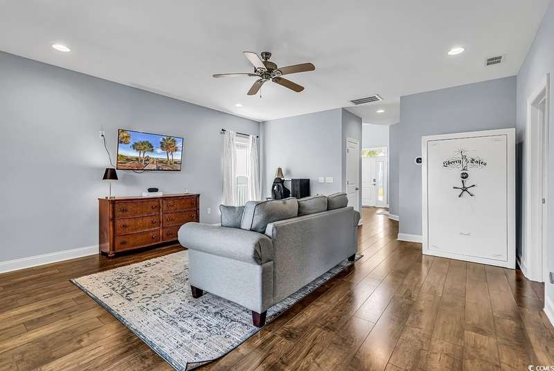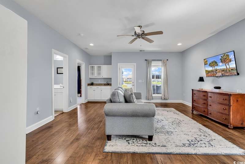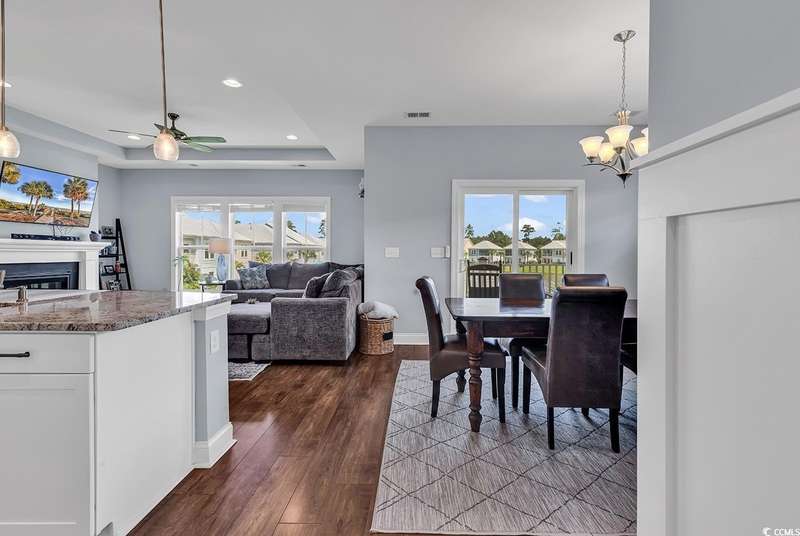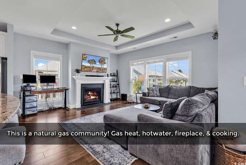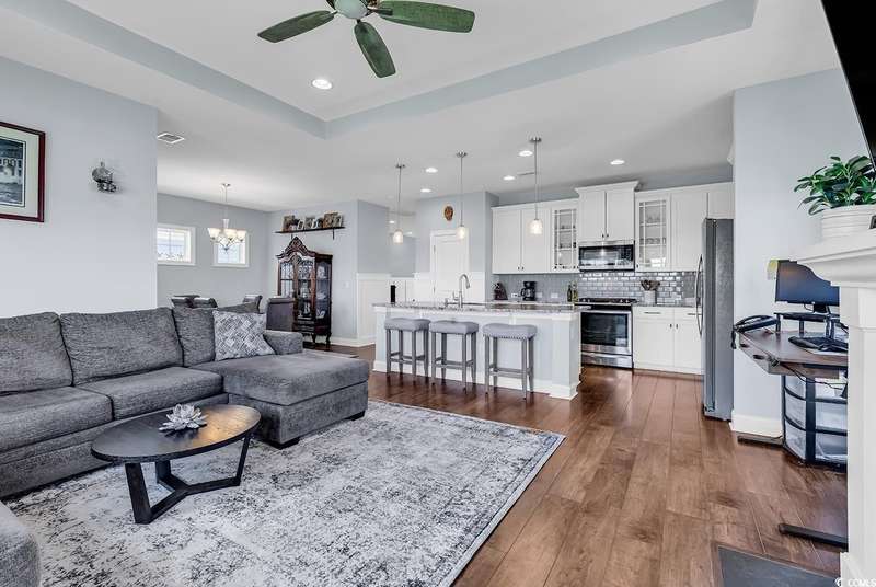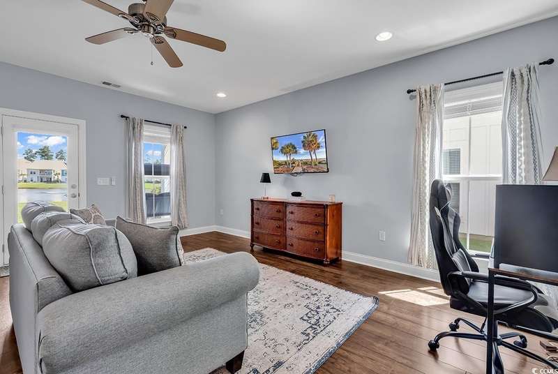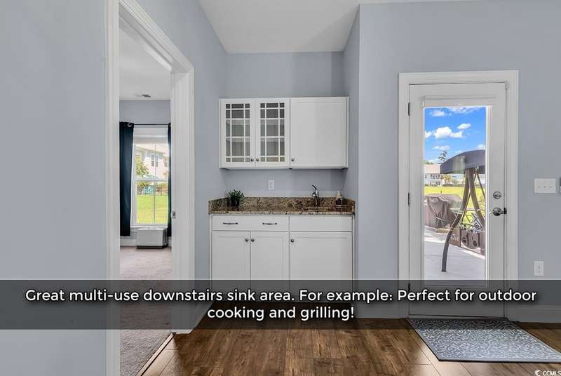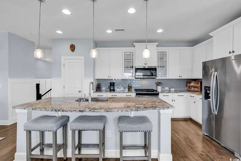 Welcome to a home that perfectly captures the relaxed elegance of coastal living, nestled in the peaceful and private community of Wilderness Pointe, part of the greater Prince Creek master-planned development in Murrells Inlet, South Carolina. This thoughtfully designed home features durable concrete fiber siding and a sleek metal roof, combining timeless craftsmanship with lasting durability. Inside, you'll find spacious living areas both upstairs and down. Unlike most homes in the neighborhood, there's no stairway needed to reach the downstairs living room and bedrooms, offering convenience and ease of access. The home also includes a built-in elevator shaft, giving you the option for a future elevator to be installed. Step outside to a large backyard that overlooks a tranquil pond, complete with a gentle water feature that brings a calming ambiance to your everyday life. A spacious side yard easement offers extra room and privacy, creating a rare sense of openness and freedom. The home is powered by natural gas and includes gas service for the fireplace, cooking, hot water, and heating. Throughout the upstairs and downstairs living areas, you’ll find beautiful hard surface flooring that’s both elegant and easy to maintain. Relax and unwind on the screened-in back porch as you enjoy peaceful views of the pond, or sip your morning coffee on the private front porch located just off the large master bedroom. Coastal design touches are found throughout, including craftsman-style trim, classic wainscoting, and tray ceilings that add depth and character. The master suite is generously sized, offering plenty of space to relax. The en suite bathroom includes a spacious walk-in tiled shower, a separated owner's closet, and a layout that balances comfort with sophistication. Life in Wilderness Pointe is both serene and social. Set in the rear of Prince Creek, this quiet community enjoys a sense of seclusion while being just steps from a vibrant lifestyle. Sidewalks extend from just outside the neighborhood entrance, winding throughout Prince Creek and perfect for walking, jogging, or cruising by golf cart. Residents also enjoy access to the Prince Creek West amenity center, which includes a scenic nature trail, two pools, a kiddie pool, a large covered pavilion with a fireplace, and a variety of outdoor activities including bocce ball, horseshoes, tennis, pickleball, and basketball. Prince Creek spans nearly 2800 acres and is built around South Carolina’s only Tournament Players Club golf course. Driving down the beautifully maintained TPC Boulevard, you'll instantly notice the laid-back Florida feel of the area. It’s common to see neighbors waving from their golf carts, enjoying the charm and community spirit that make Prince Creek truly special. Locals often describe Prince Creek as a smaller, coastal version of Florida's popular golf cart neighborhoods… except here, the beach is just minutes away. With grocery stores, restaurants, and medical offices located right inside the community, life here is as convenient as it is scenic. Whether you're heading out to hit some golf balls, grabbing lunch with friends, taking an afternoon swim, or enjoying a sunset walk, everything you need is right here. Welcome to your own private coastal haven in the heart of Murrells Inlet. Please note: Image editing software has been used on the exterior images, which may alter the color of the sky, water, or grass in any photos.