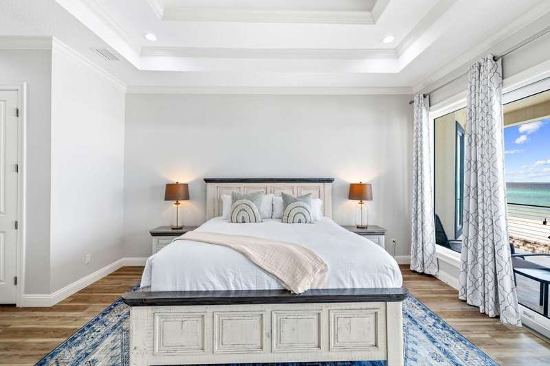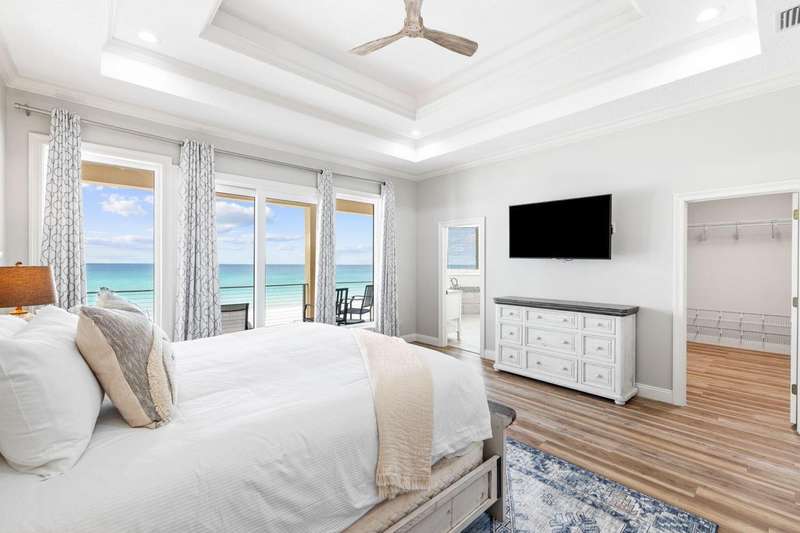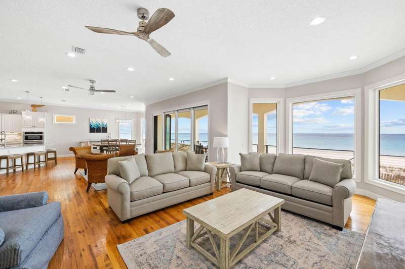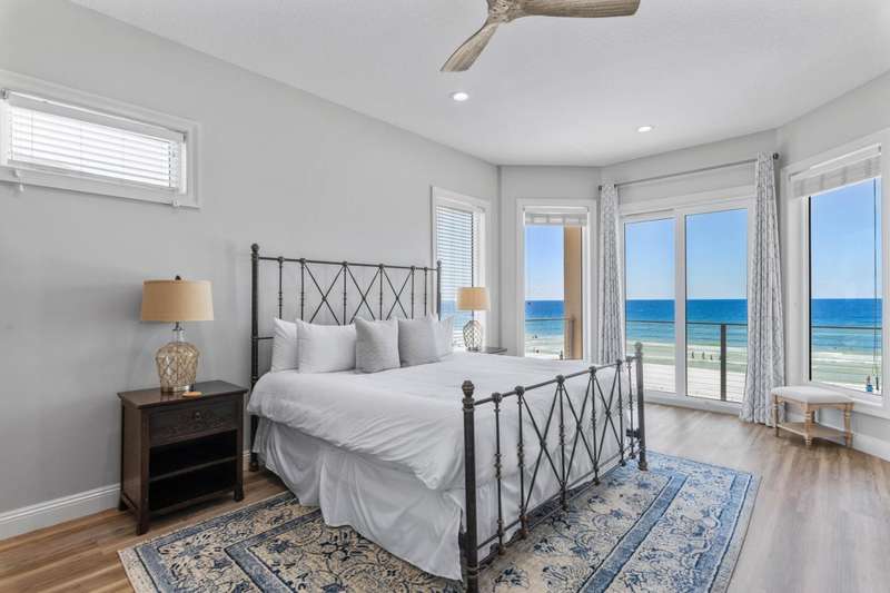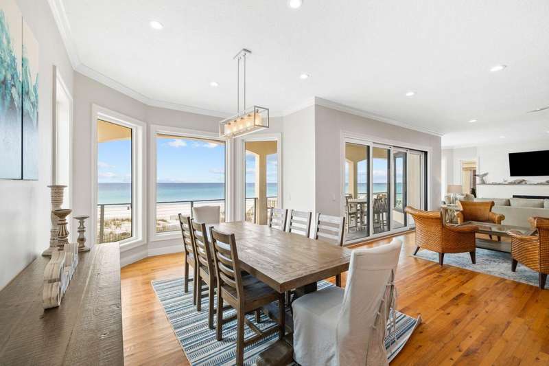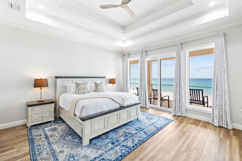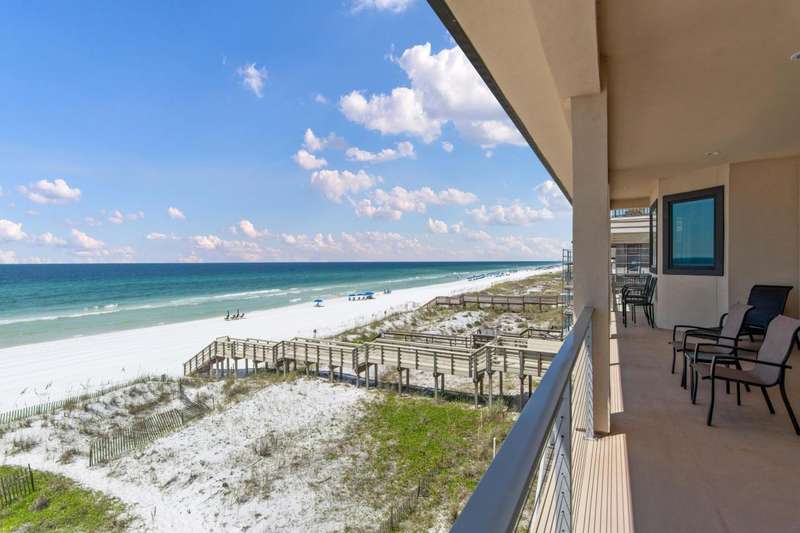 Welcome to Crystal Cabana, a gorgeous gulf front property located in Destiny Shores, one of Destin's most coveted luxury communities. Breath-taking views abound through large windows and doors throughout this light filled beach home. Balconies on both levels span the entire width of the home and provide a relaxing retreat to enjoy the natural surroundings, sounds of the surf, and the emerald green waters. Stairs down from the lower balcony lead to the sparking white quartz sand that Destin is famous for! Features of this beautiful home include an open spacious living/dining area, modern well appointed kitchen, fireplace, and 5 bedroom suites with walk-in closets. There are two updated master suites, one on each level, that include king beds, walk-in showers, and soaker tubs. The second level boasts three more guest rooms, each with their own bath. All bedrooms in the home have extra large walk-in closets plus there are additional closets for extra storage! A powder room and laundry are located on the first level and there is a 2-car garage and driveway space for parking as well. Recent updates include NEW FLOORING on main level and newly painted kitchen cabinetry. Owner's and guests enjoy exclusive access to Destiny Shores' numerous amenities including the upscale community pool, fully equipped fitness facility, and tennis court--all within easy walking distance.Crystal Cabana is located in the heart of Destin, less than a mile from two favorite local dining spots, Camille's and The Crab Trap. Also, less than two miles to Destin Commons which offers a vast array of activities including, shopping, dining, a movie theater, bowling alley, grocery stores and more!