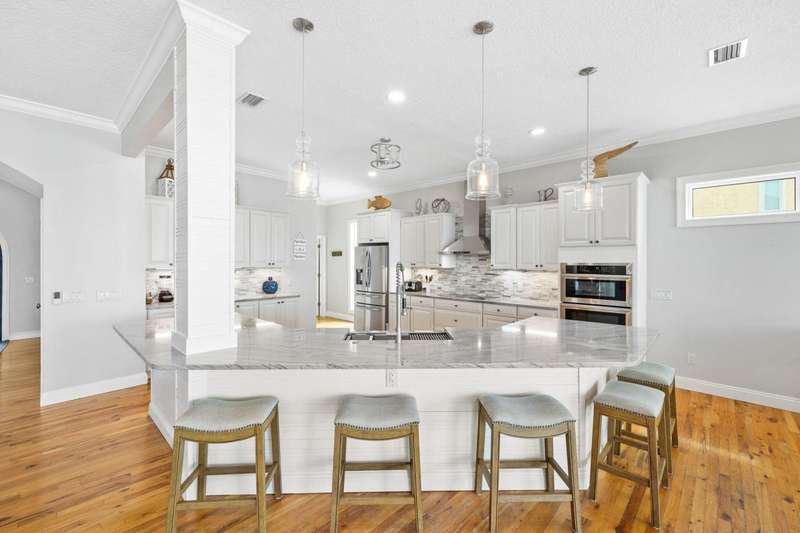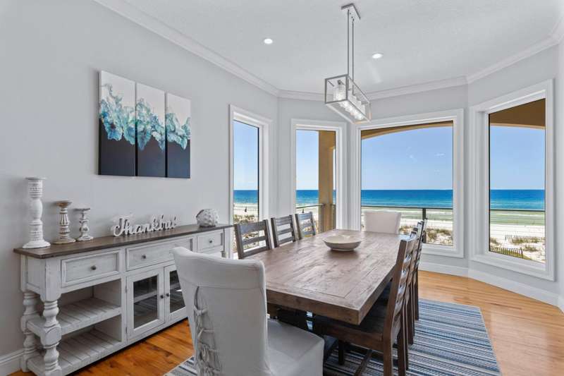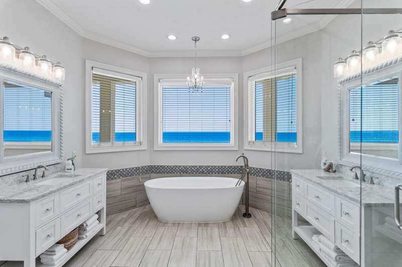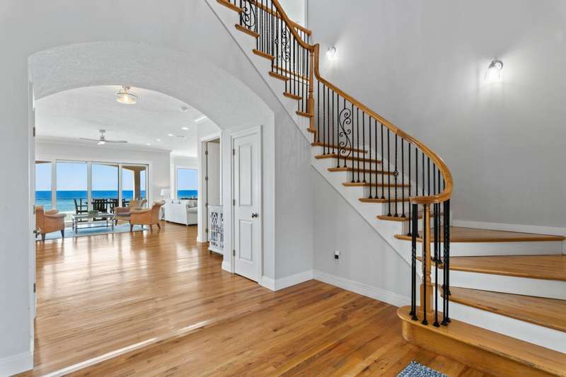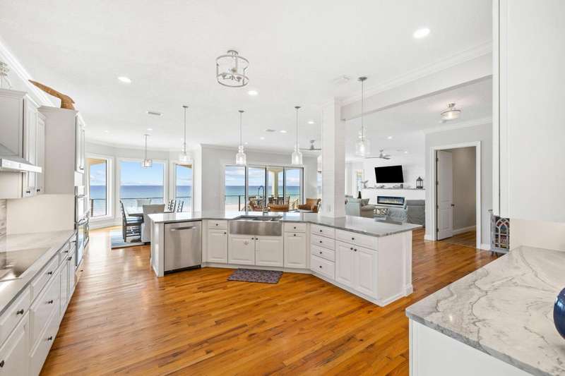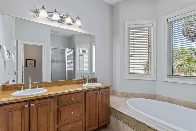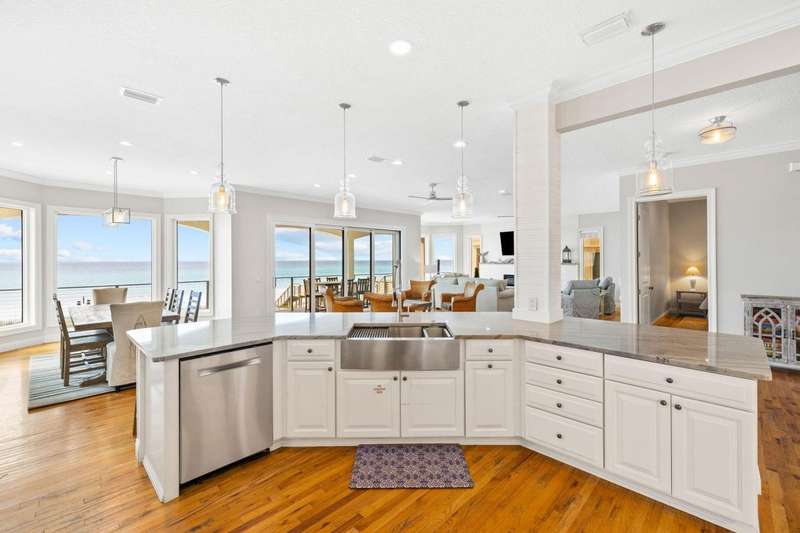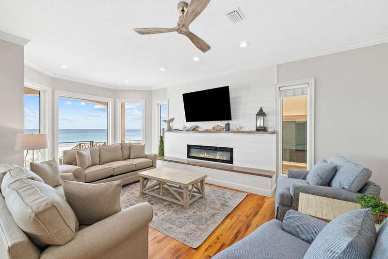 Welcome to Crystal Cabana, a gorgeous gulf front property located in Destiny Shores, one of Destin's most coveted luxury communities. Breath-taking views abound through large windows and doors throughout this light filled beach home. Balconies on both levels span the entire width of the home and provide a relaxing retreat to enjoy the natural surroundings, sounds of the surf, and the emerald green waters. Stairs down from the lower balcony lead to the sparking white quartz sand that Destin is famous for! Features of this beautiful home include an open spacious living/dining area, modern well appointed kitchen, fireplace, and 5 bedroom suites with walk-in closets. There are two updated master suites, one on each level, that include king beds, walk-in showers, and soaker tubs. The second level boasts three more guest rooms, each with their own bath. All bedrooms in the home have extra large walk-in closets plus there are additional closets for extra storage! A powder room and laundry are located on the first level and there is a 2-car garage and driveway space for parking as well. Recent updates include NEW FLOORING on main level and newly painted kitchen cabinetry. Owner's and guests enjoy exclusive access to Destiny Shores' numerous amenities including the upscale community pool, fully equipped fitness facility, and tennis court--all within easy walking distance.Crystal Cabana is located in the heart of Destin, less than a mile from two favorite local dining spots, Camille's and The Crab Trap. Also, less than two miles to Destin Commons which offers a vast array of activities including, shopping, dining, a movie theater, bowling alley, grocery stores and more!