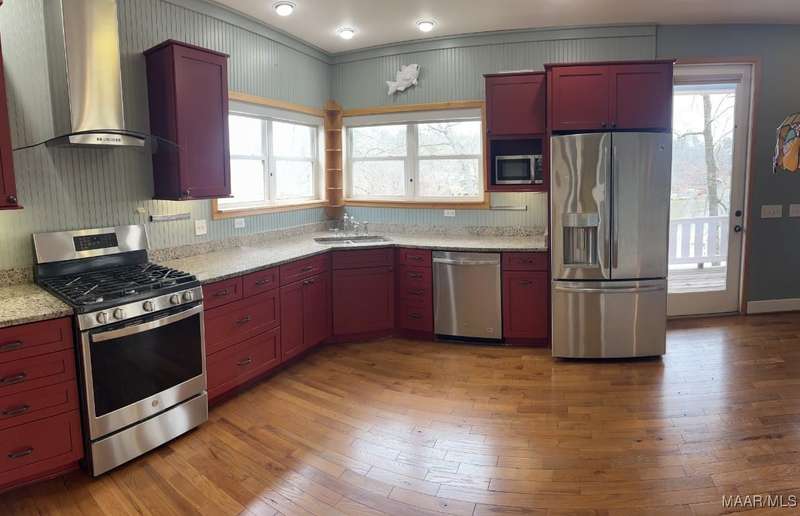 Get ready for a wonderful summer with this beautiful home which sits on 171 feet of shoreline on Lake Mitchell just a few steps from the lake. This well built and pristine home has two levels of living space. Each level is a home in itself complete with full functioning kitchens, bedrooms, dens, bathrooms, exterior entrances, and decks overlooking the lake. Some of the features include an open boathouse complete with two boat lifts, two Trane hvac units, central vacuum system, pier, lots of windows with great views of the lake, hardwood floors, lots of closet space, storage for river supplies, carport, covered area for a golf cart, undermount cabinet lighting, shaded deck with swing, custom shades, clawfoot tub, concrete driveway, paved road access to the property, bar, granite countertops, gutters, lots of ceiling fans, no carpet, tile, stained concrete, wood burning fireplace, deep water, and so much more!