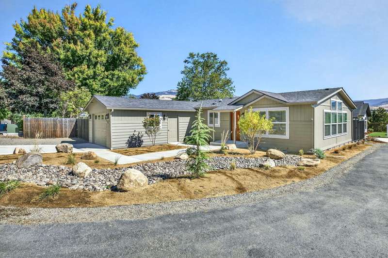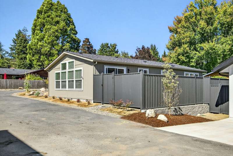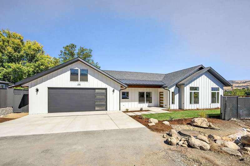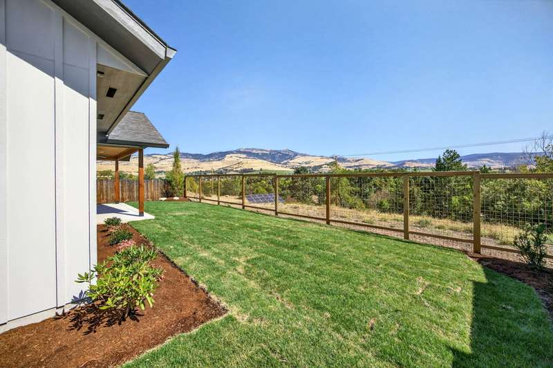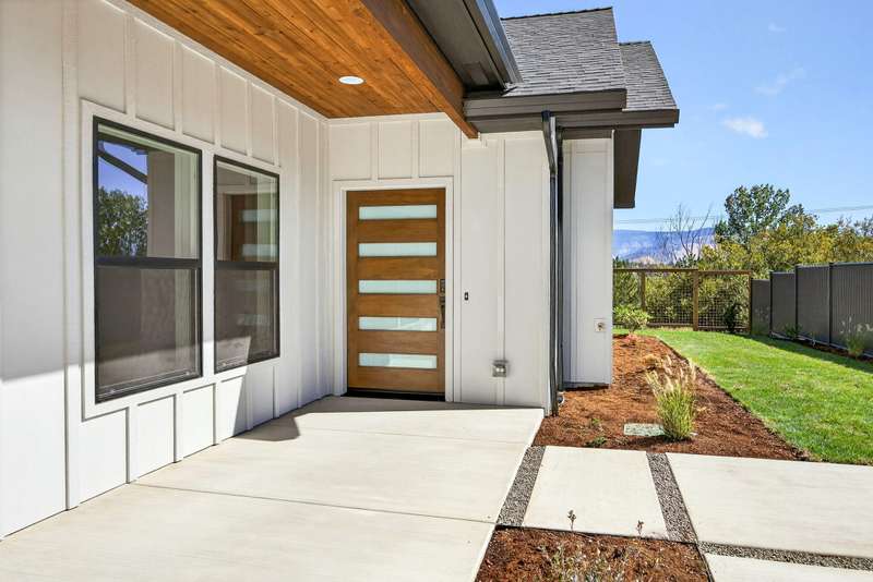 Welcome to Ash Meadows, a new 4 lot subdivision in Ashland Or. This rare find has two homes on one lot, each single level with lovely views of the E hills. The main home features 2019 sq feet, 3 bedroom and two and half baths, with easy access to Downtown Ashland. Its open design includes a spacious island kitchen with quartz countertops and backsplash and stunning great room design featuring a floor to ceiling fireplace and 9 foot ceilings throughout. The primary suite is a retreat with a spa-like bath, soaking tub, walk-in shower, dual vanity and skylight. A large slider extends living to a tongue and groove covered patio landscaped and fenced yard The second home adds 1,188 sq ft with 2 bedrooms and 2 baths, remodeled with quartz counters, new cabinetry, and updated systems ideal for extended family, rental income, or guests offering a unique opportunity!