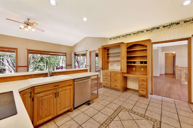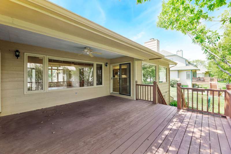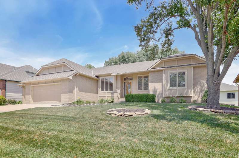 Located in the heart of desirable Tallgrass, this beautifully maintained one-owner home offers timeless appeal and a floor plan designed for both comfort and functionality. Rich hardwood floors flow throughout the main level, leading into a warm and inviting kitchen and hearth room anchored by a charming brick fireplace. A wall of windows along the back of the home fills the space with natural light and frames views of the mature trees in the East-facing backyard. Step out to the expansive covered deckan ideal setting for morning coffee, evening conversations, or weekend gatherings. Formal living and dining adds a touch of elegance, while a convenient half bath and main-floor laundry are perfectly positioned off the kitchen and near the garage entry. The spacious primary suite is a true retreat, featuring an en-suite bath with dual vanities, a dedicated make-up area, a large soaking tub, separate shower, and a generous walk-in closet. A spacious second bedroom and full bathroom complete the main level. Entertain with ease in the fully finished walk-out basement offering a large rec/family room with a second gas fireplace flanked by custom built-ins, a wet bar perfect for hosting, a full bedroom and bathroom, abundant storage, and a versatile bonus room. Currently used as a workshop, this space includes a closet and with some changes, can easily serve as a comfortable fourth bedroom. Maintenance updates include: a new microwave, Class IV roof (2013), bi-annual services of HVAC, mud-jacking, and window/deck repairs. With close proximity to K-96 highway, Central Christian Academy, and some of Wichitas best shopping, dining, and golf, this home delivers the lifestyle you've been looking for in an inviting neighborhood. Don't miss!