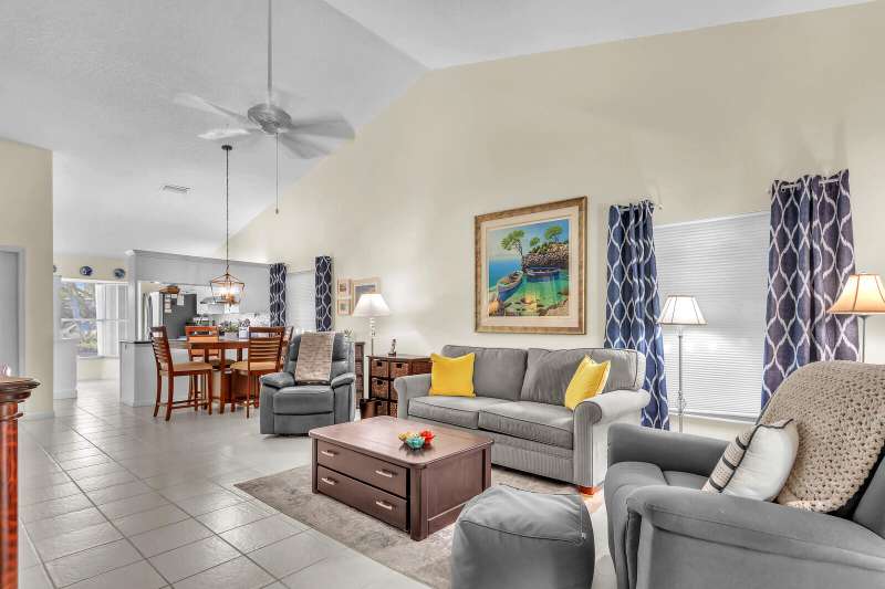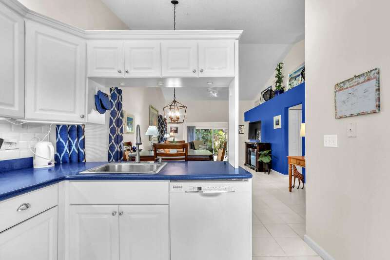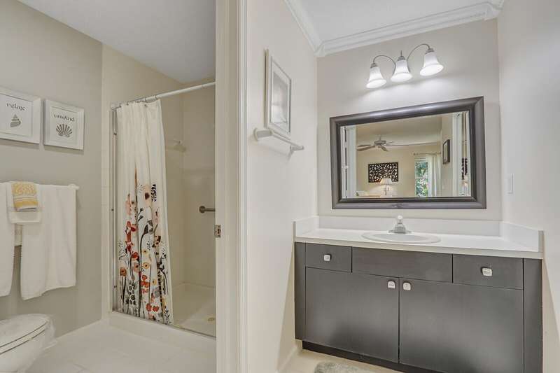 Beautifully upgraded unit in a private, peaceful setting in Sea Pines, a 55+ community in Hobe Sound. This light filled Villa offers exceptional privacy and serene home environment. Featuring vaulted ceilings, upgraded tile flooring, an elegantly renovated kitchen and bath, and a charming eat-in kitchen with a bay window- perfect for morning coffee. Enjoy the security a full hurricane shutters, one car garage, screened front porch. Located on a quiet street, this home offers a rare blend of convenience and comfort with Beaches and shopping close by.