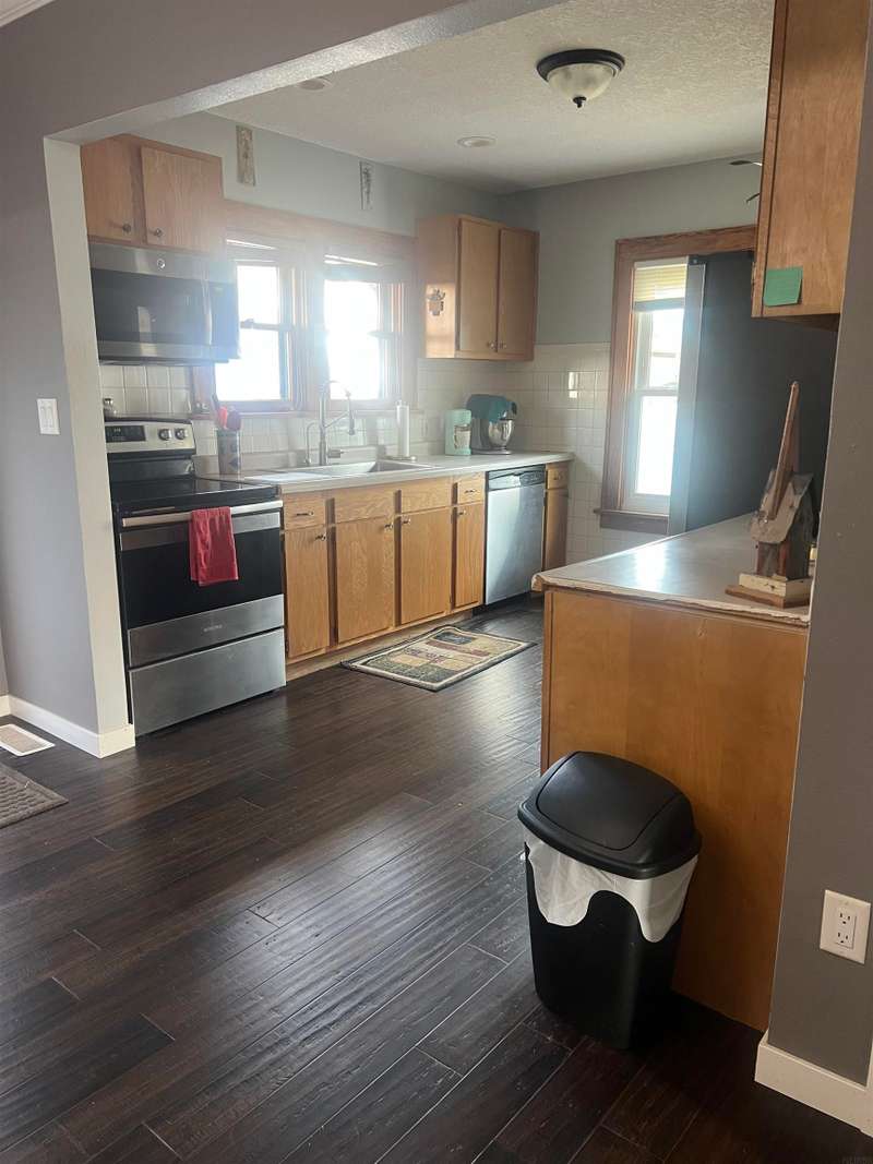 Move in ready, beautiful home with two bedrooms & one bath, ready for new owner. Updates include new carpet in living room and bedrooms, concrete driveway, and new high efficiency gas furnace. Walk into the front entrance and you'll love the natural light in the open living room. The kitchen and dining room has easy to care for bamboo laminate flooring. Plenty of cupboard space with newer stainless steel appliances, large new sink, faucet and water filtration system. Nice sized full bath with large vanity. Full basement with lots of storage and built in shelving. Large backyard with 6 ft. privacy fence with 20 x 10' garden area, dog kennel attached to the single detached garage. Located in a nice neighorhood on a quiet street. Call and make an appointment to see this beautiful home today!