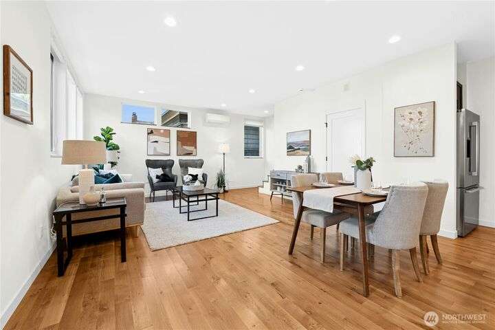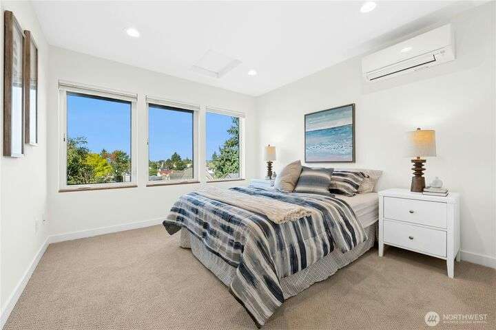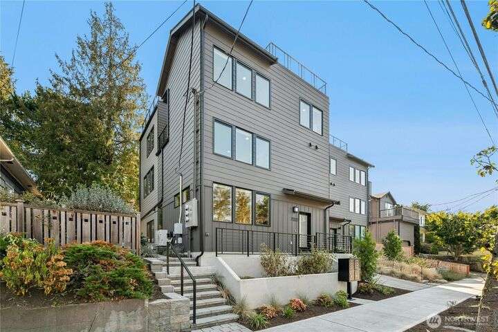 Experience modern living in this contemporary condo, set on a tree-lined street in a desirable residential neighborhood. Built with quality construction & thoughtful design, this home offers the feel of a single-family residence with the ease of condo living. The main living area is conveniently located on the first floor, while bedrooms above provide comfort & privacy. A designated laundry room adds everyday convenience, and mini-splits on every level ensure year-round comfort. Enjoy sweeping views of the city skyline, Puget Sound, and even the Space Needle fireworks from the rooftop deck. With only six homes in the community, you’ll appreciate the sense of space & exclusivity. Off-street parking with EV charging completes this rare find.